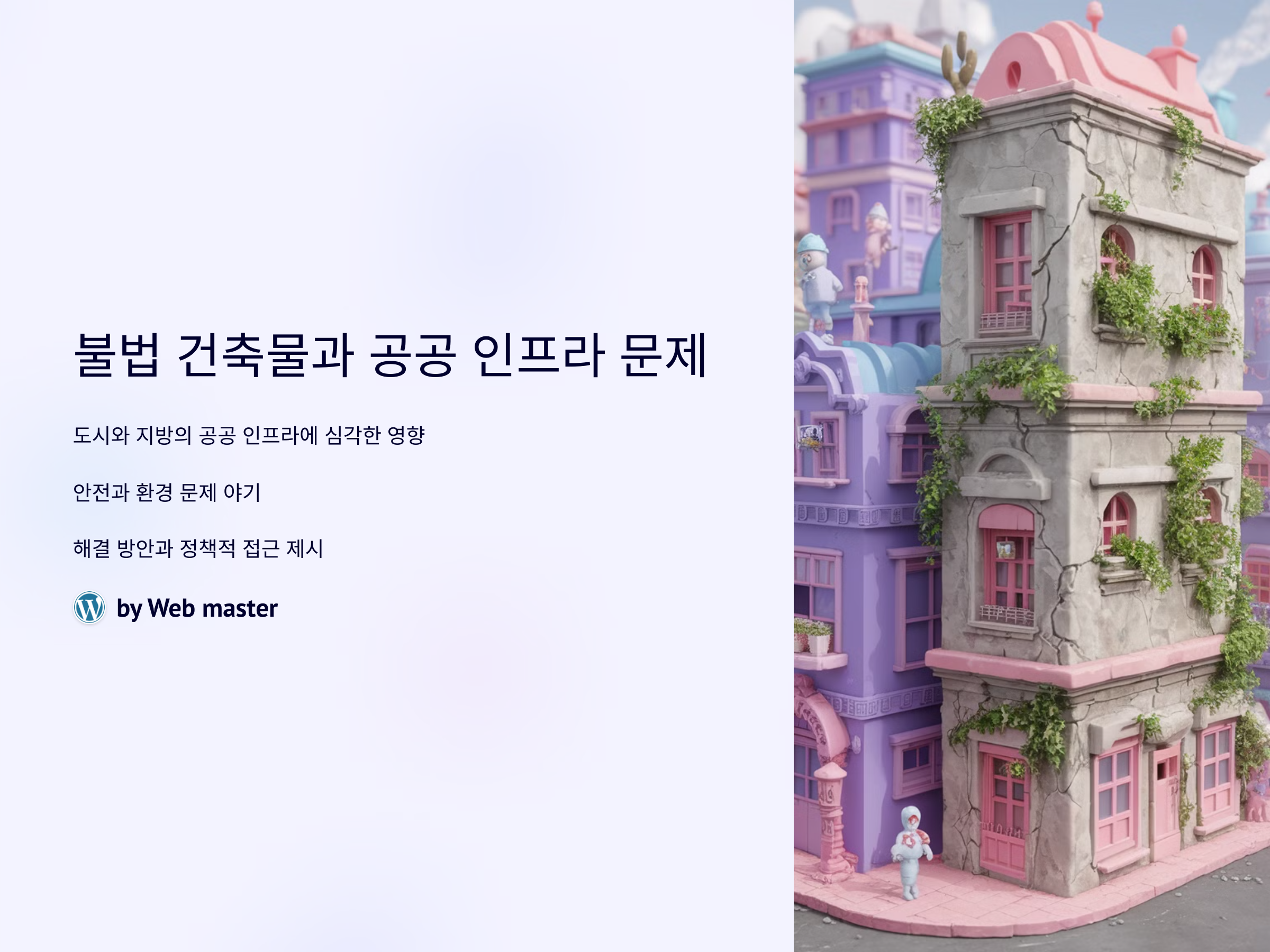 불법 건축물 문제는 단순한 법적 문제를 넘어, 사회적 안전과 공공 인프라의 효율성에 중요한 영향을 미칩니다. 이 문제를 해결하기 위해서는 강력한 정책적 대응과 함께 시민들의 참여가 필요합니다. 불법 건축물을 줄이고, 공공 인프라를 개선하는 노력이 지속되어야 합니다.