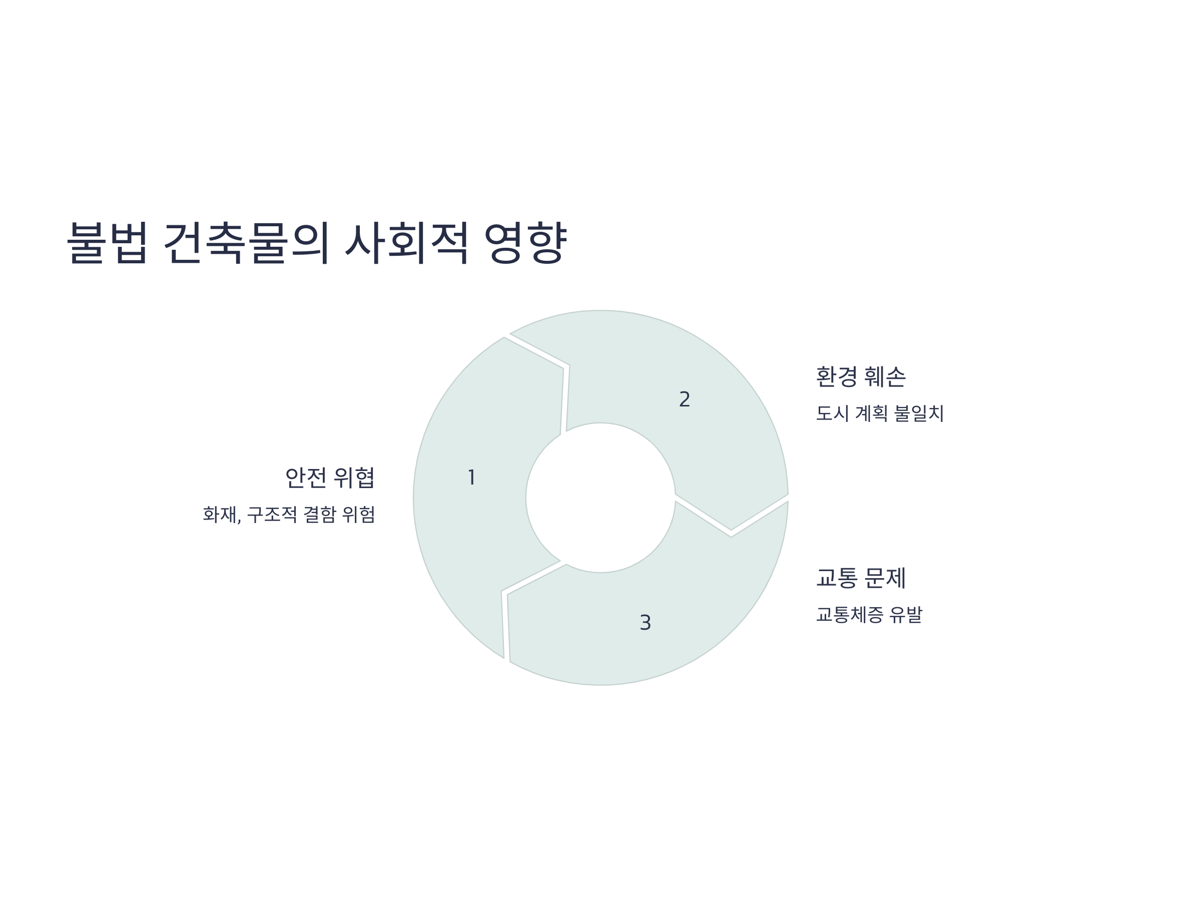 불법 건축물은 단순히 개인의 법적 문제에 그치지 않고, 사회적으로도 큰 영향을 미칩니다. 특히, 불법 건축물은 공공의 안전을 위협할 수 있습니다. 예를 들어, 불법 건축물의 경우 안전 기준을 충족하지 않아서 화재나 구조적 결함으로 인한 사고가 발생할 수 있습니다. 또한, 도시 계획과 맞지 않아 주변 환경을 훼손하거나 교통체증 등의 문제를 야기할 수 있습니다.