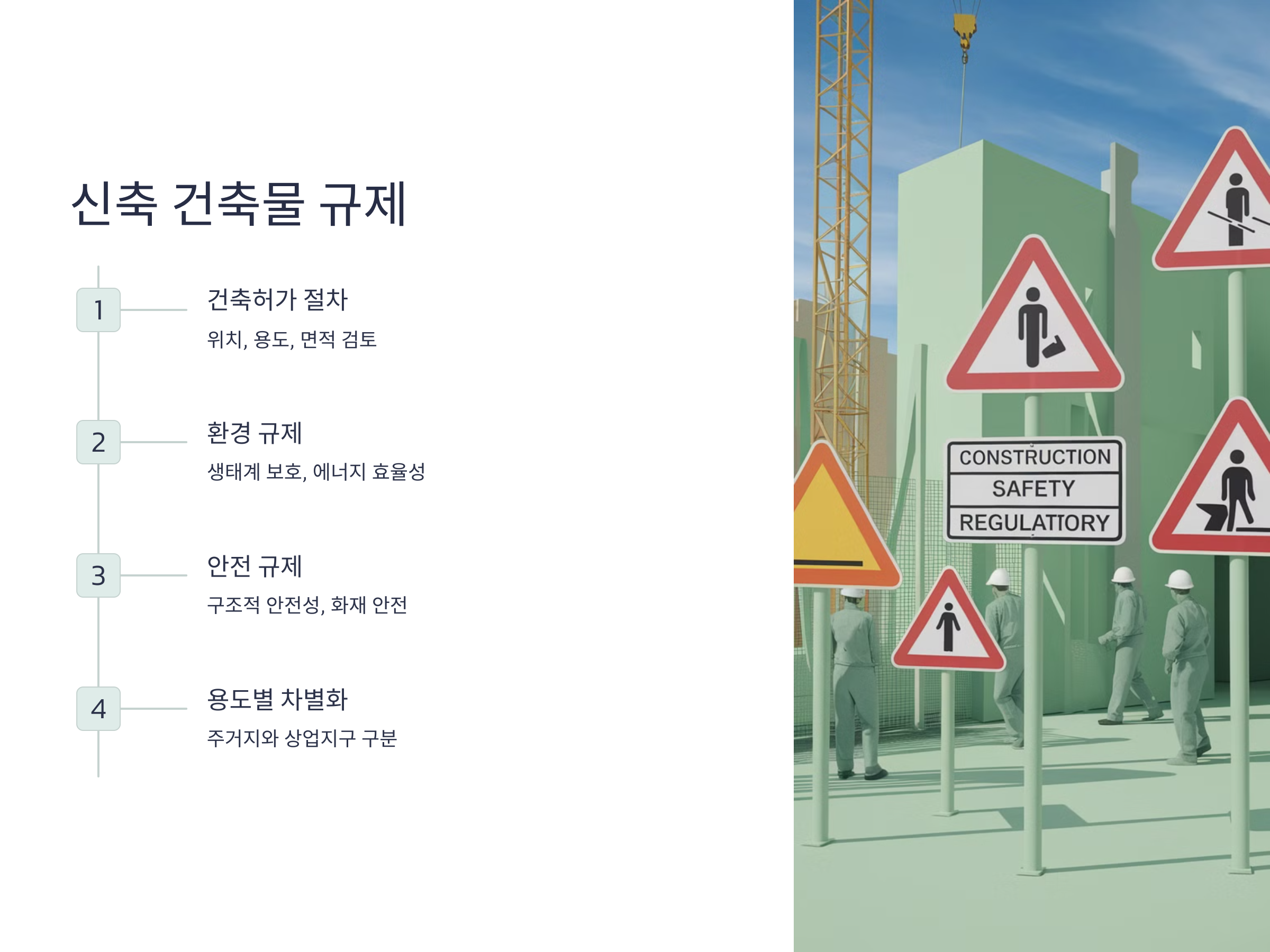 신축 건축물에 대한 규제는 도시 계획, 건축법, 환경 보호 법령 등 다양한 법률에 의해 엄격하게 관리되고 있습니다. 이러한 규제는 신축 건축물이 사회와 환경에 미치는 영향을 최소화하고, 주민들의 안전을 보장하기 위한 것입니다.
