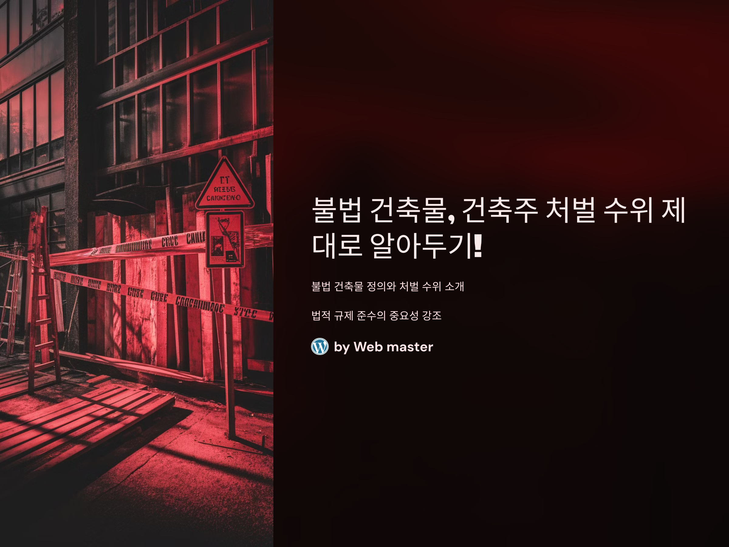 불법 건축물에 대한 처벌은 생각보다 더 엄격하고 심각할 수 있습니다. 이 글에서는 불법 건축물이 무엇인지, 불법 건축물의 건축주가 처벌받을 수 있는 수위와 그에 따른 법적 책임을 정확하게 알아보겠습니다. 불법 건축물로 인한 피해를 막기 위해서는 법적 규제를 철저히 준수하는 것이 매우 중요합니다. 그렇다면 불법 건축물의 정의와 이에 따른 처벌 수위는 무엇일까요?