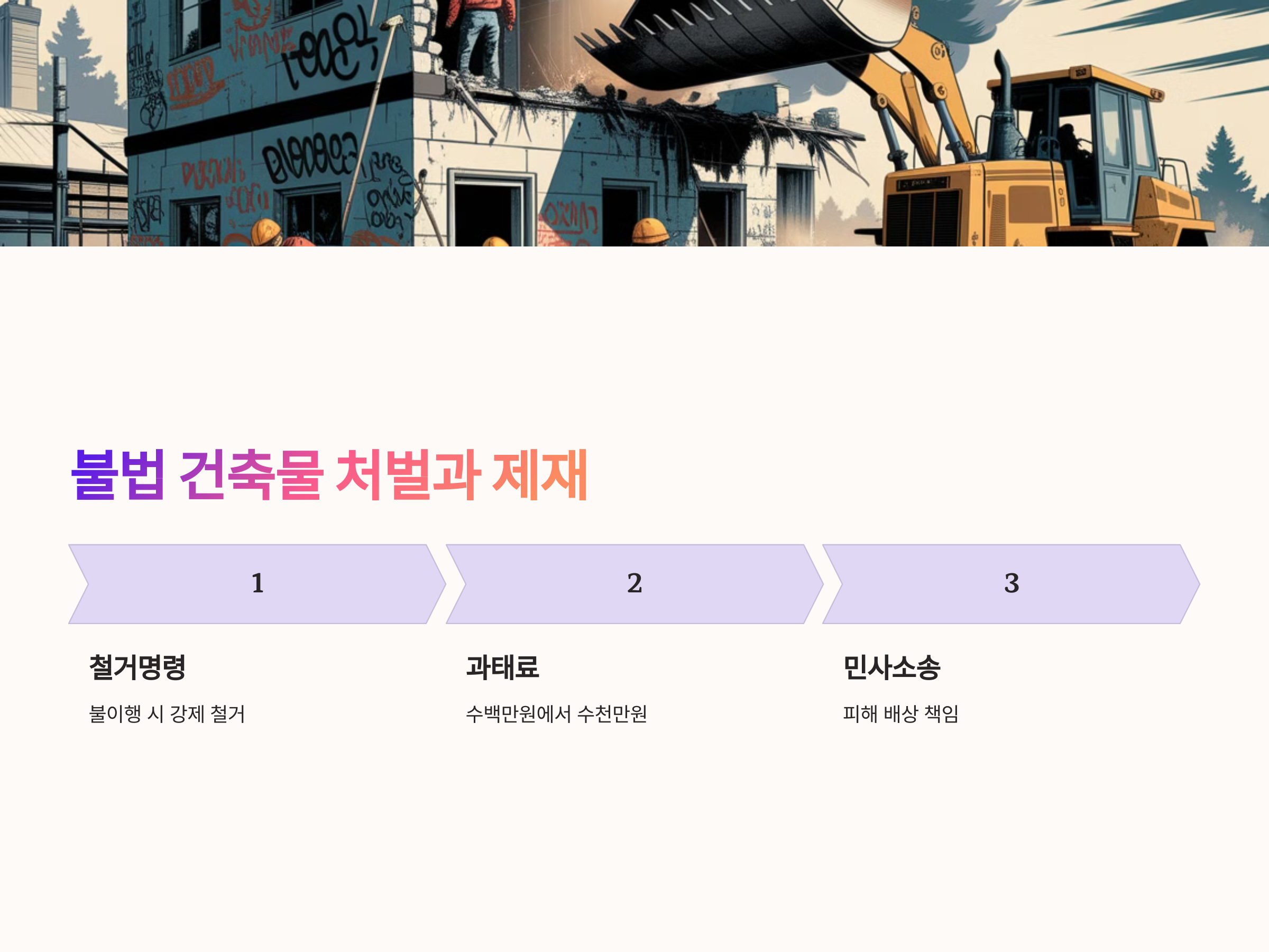 불법 건축물을 건축한 건축업자나 소유자에게 법적으로 강력한 처벌을 내릴 수 있기 때문에, 이를 방지하기 위해서는 사전 허가와 법적 절차를 준수해야 합니다.