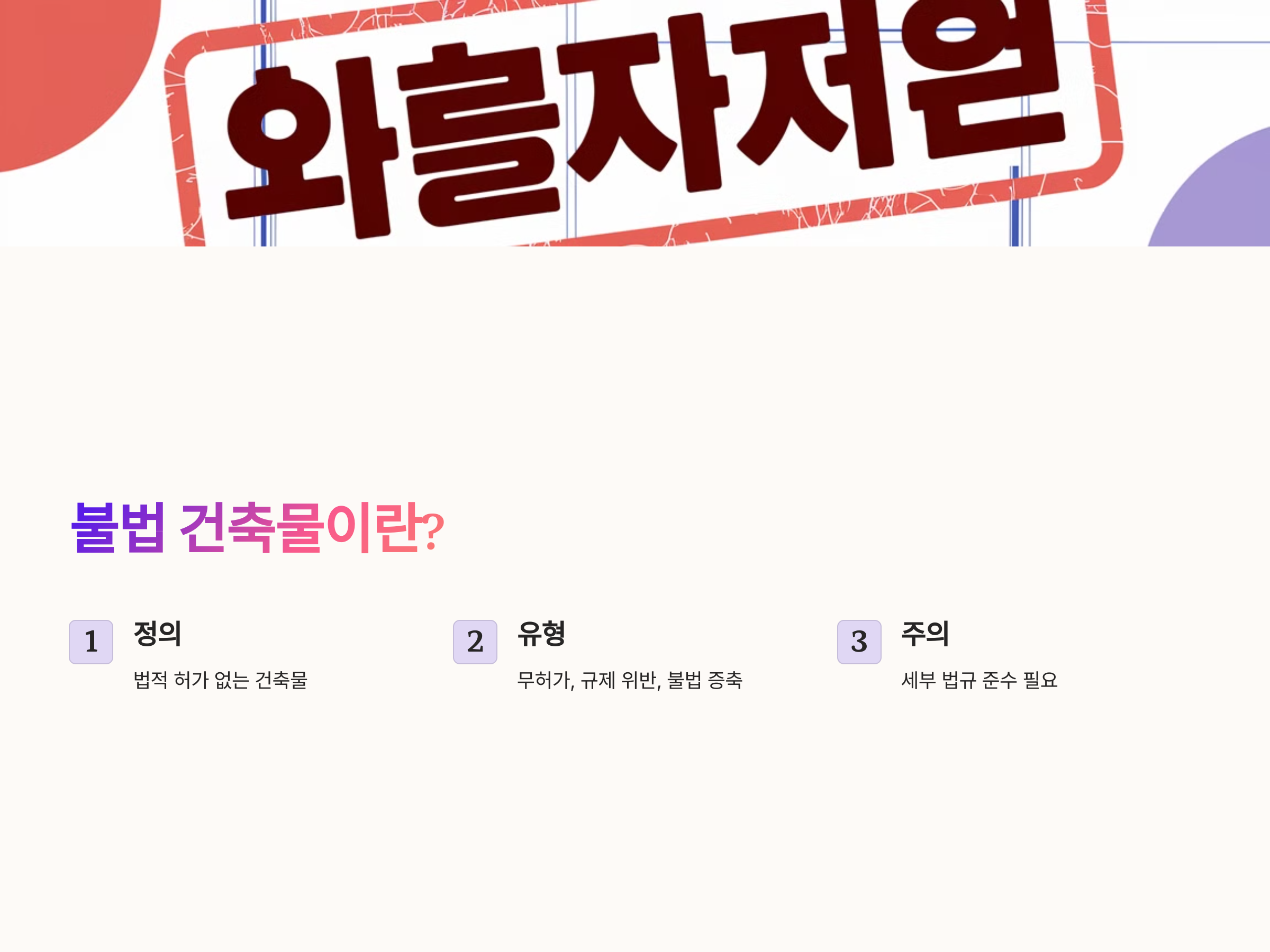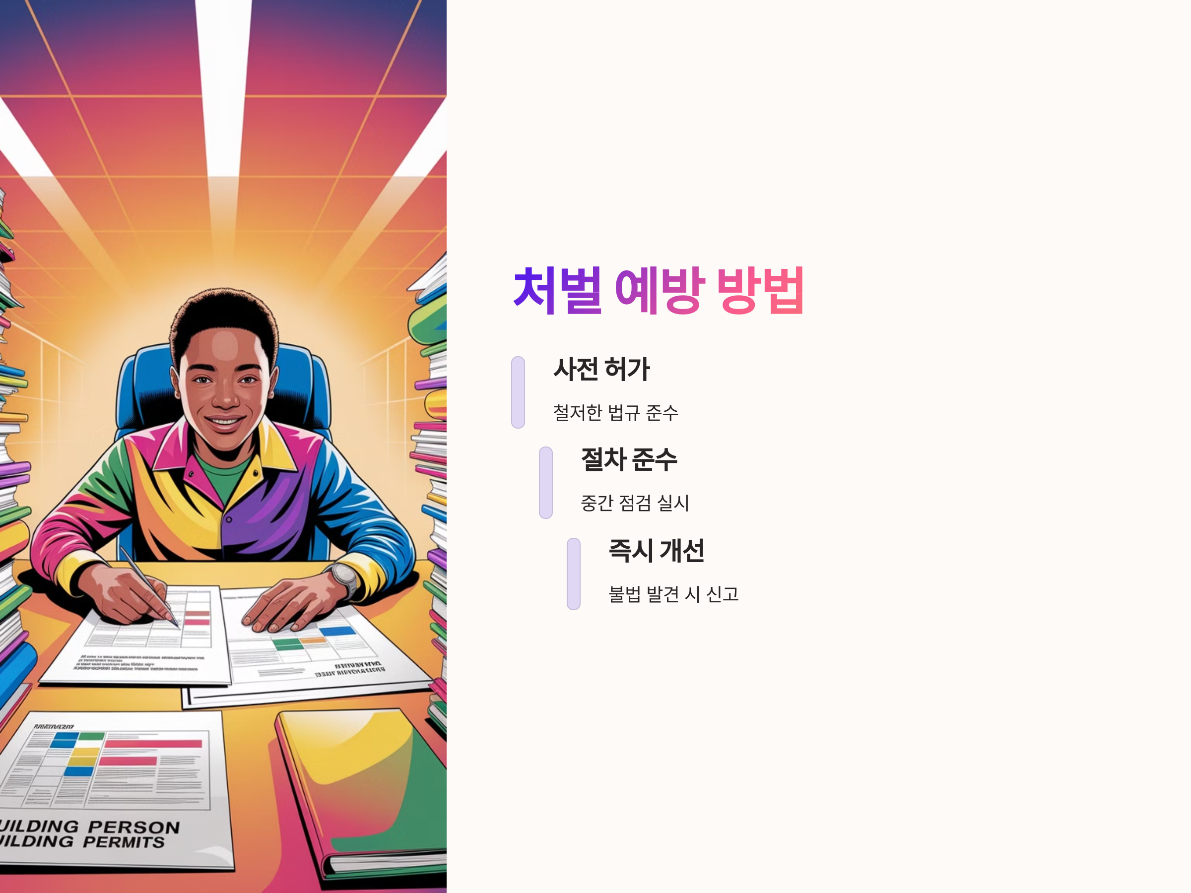 A3: 불법 건축물 예방을 위해서는 건축물 건설 전에 관련 법규와 허가 절차를 반드시 확인하고, 준수해야 합니다.