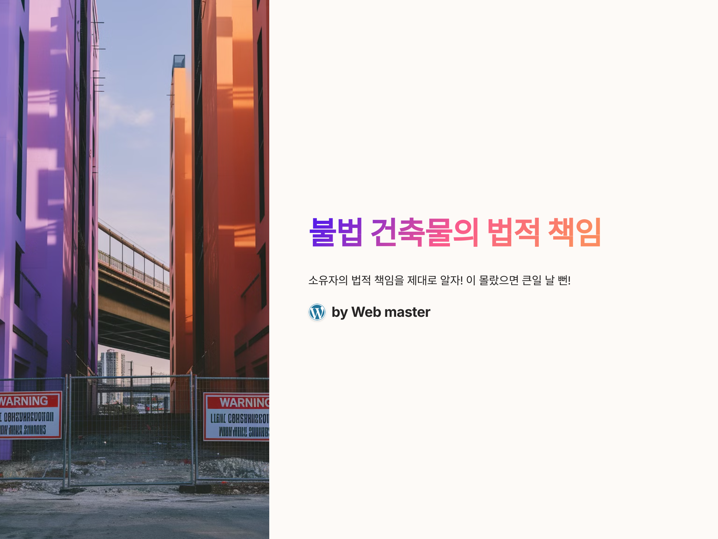 불법 건축물에 대한 이해가 부족하면 소유자는 예기치 못한 법적 책임을 지게 될 수 있습니다. 불법 건축물의 정의부터 소유자가 지게 되는 법적 책임까지, 정확히 알아두는 것이 중요합니다. 이 글에서는 불법 건축물의 법적 책임과 관련된 다양한 법적 측면을 설명하고, 소유자가 주의해야 할 사항들을 정리합니다. 알지 못하면 큰일 날 수 있는 이 문제, 자세히 알아보겠습니다.