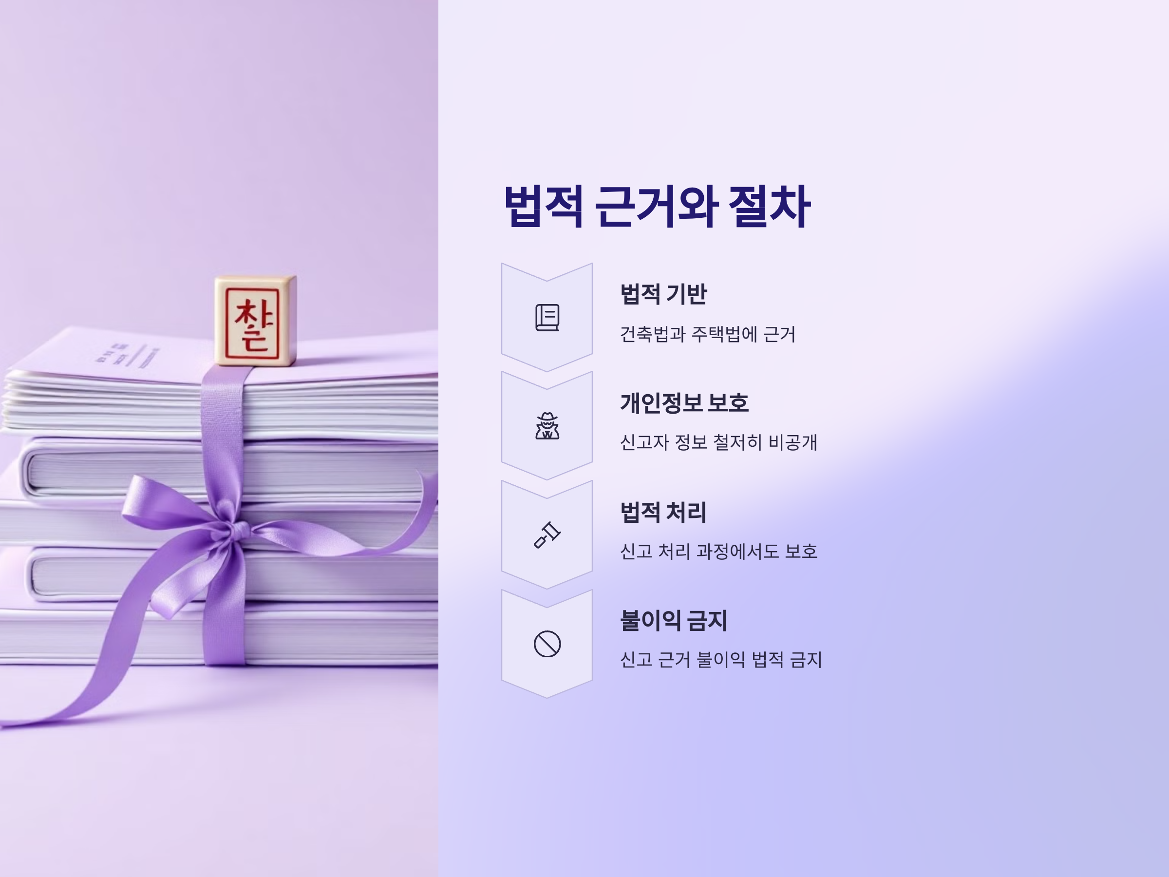 불법 건축물 신고자 보호제도의 법적 근거는 주로 '건축법'과 '주택법'에서 찾아볼 수 있습니다. 이 법들은 신고자가 자신의 안전을 위협받지 않도록 구체적인 보호 장치를 마련하고 있습니다. 예를 들어, 신고자의 개인 정보는 철저히 보호되며, 해당 신고가 법적인 절차로 진행될 때도 신고자의 신원은 공개되지 않습니다.