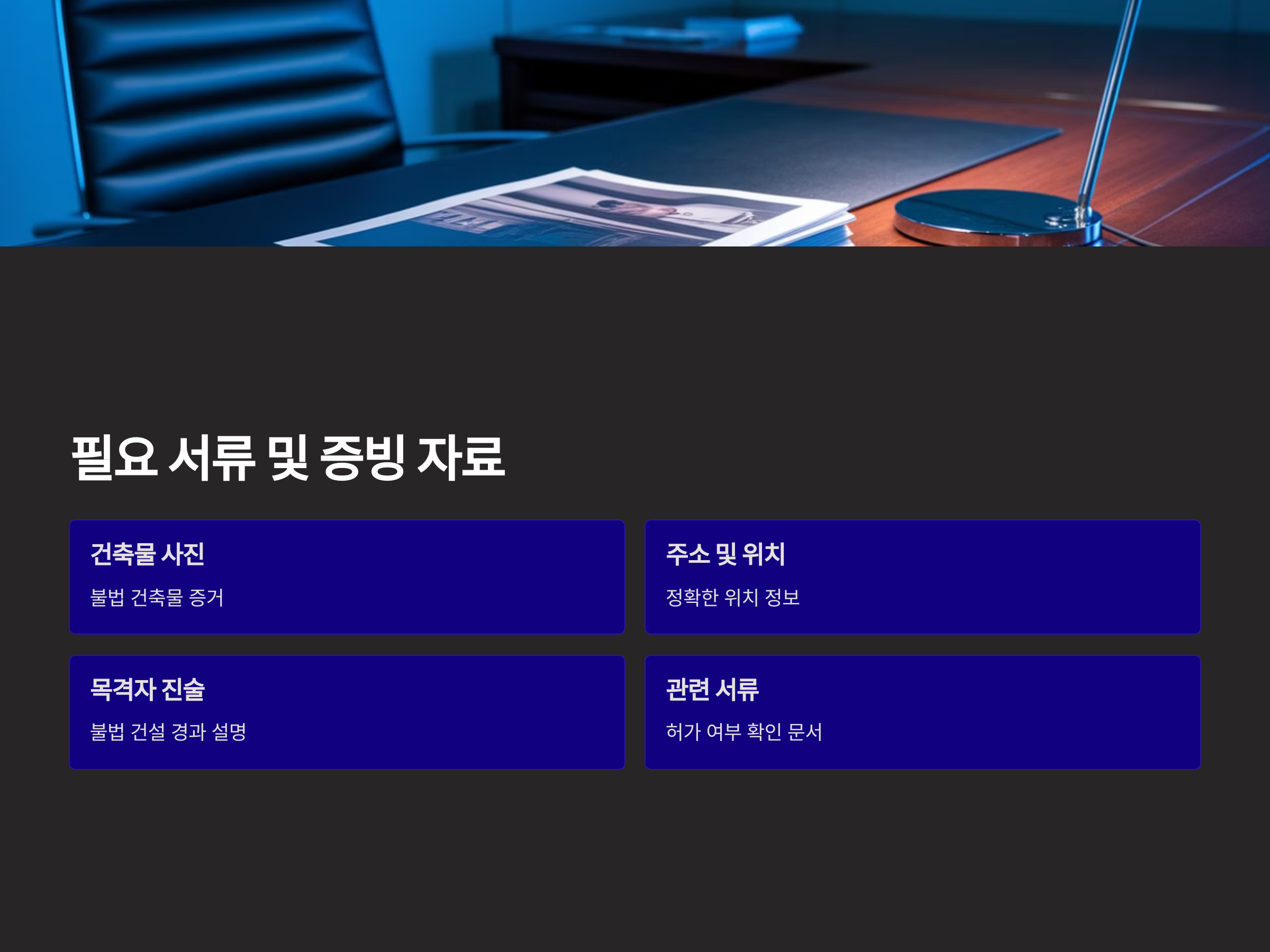 - 건축물 사진: 불법 건축물을 촬영한 사진은 가장 중요한 증거가 됩니다.