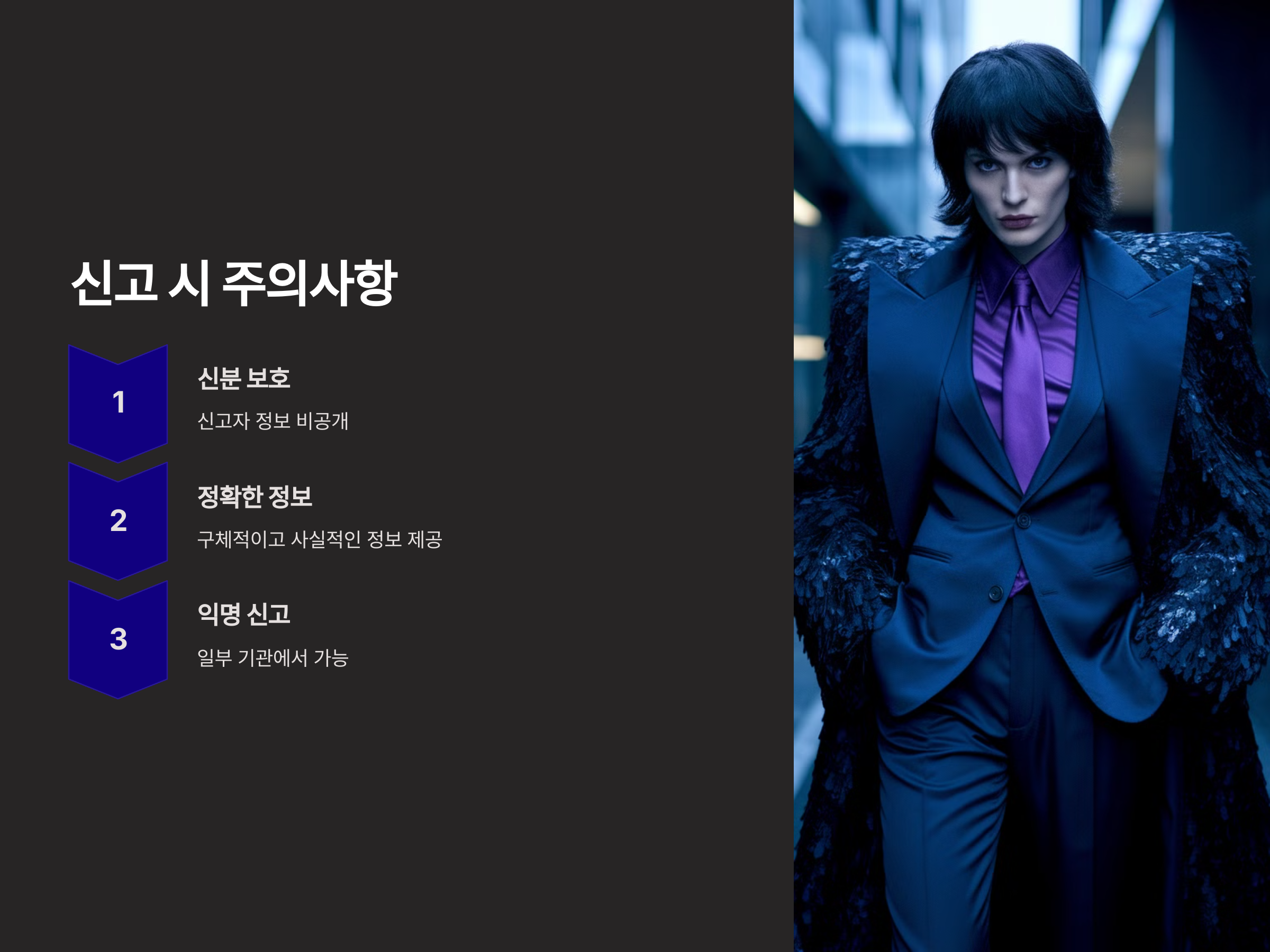 - 정확한 정보 제공: 신고 시 제공하는 정보는 가능한 한 정확하고 구체적이어야 합니다. 잘못된 정보는 오히려 법적 문제를 일으킬 수 있습니다.
