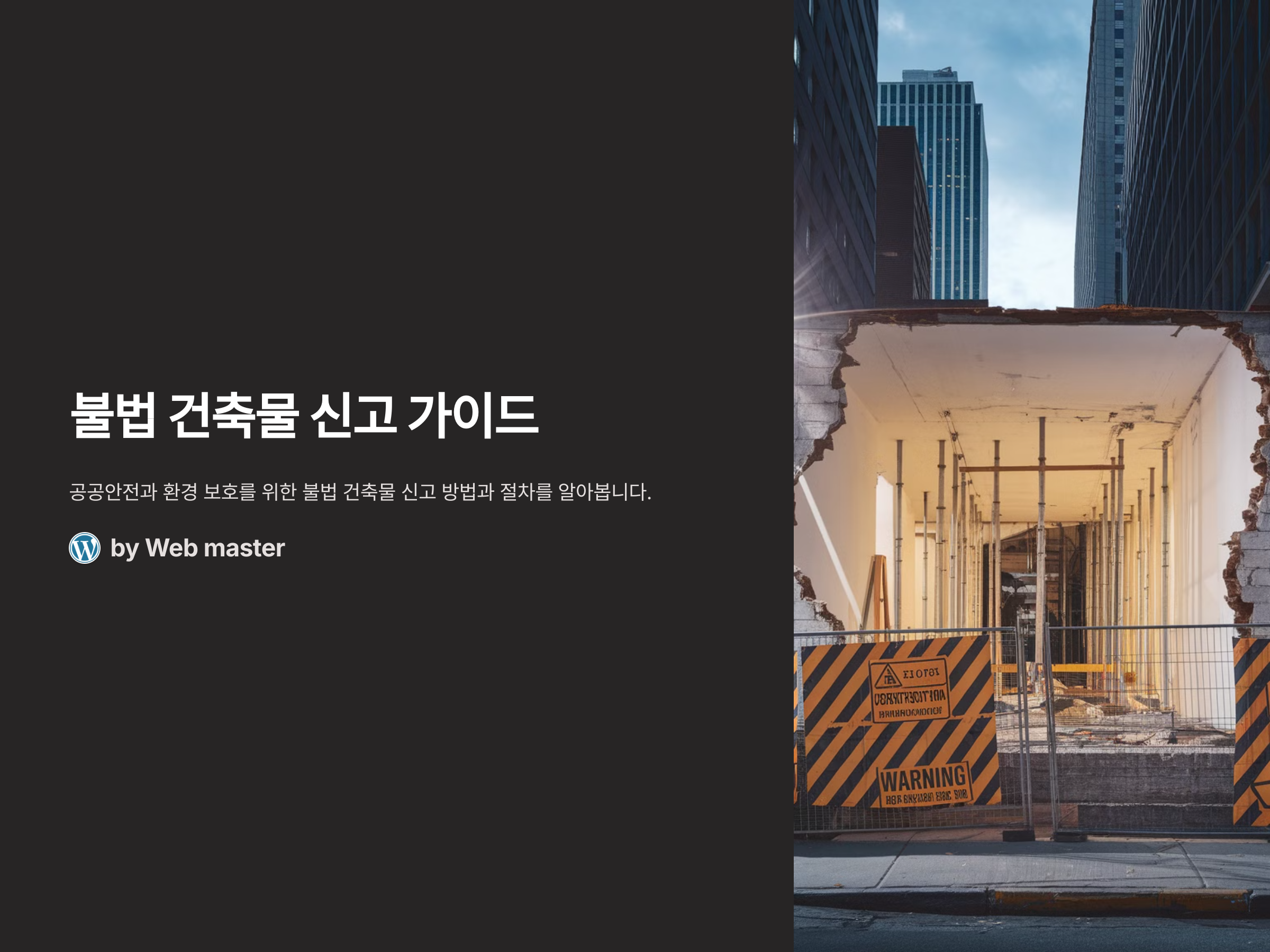 불법 건축물 신고는 우리 모두의 안전을 지키기 위한 중요한 첫걸음입니다. 위에서 안내한 절차를 참고하여 불법 건축물을 발견했다면 즉시 신고해주세요. 이를 통해 우리 사회는 더 안전하고 법적 기준을 준수하는 환경을 만들어 갈 수 있습니다.