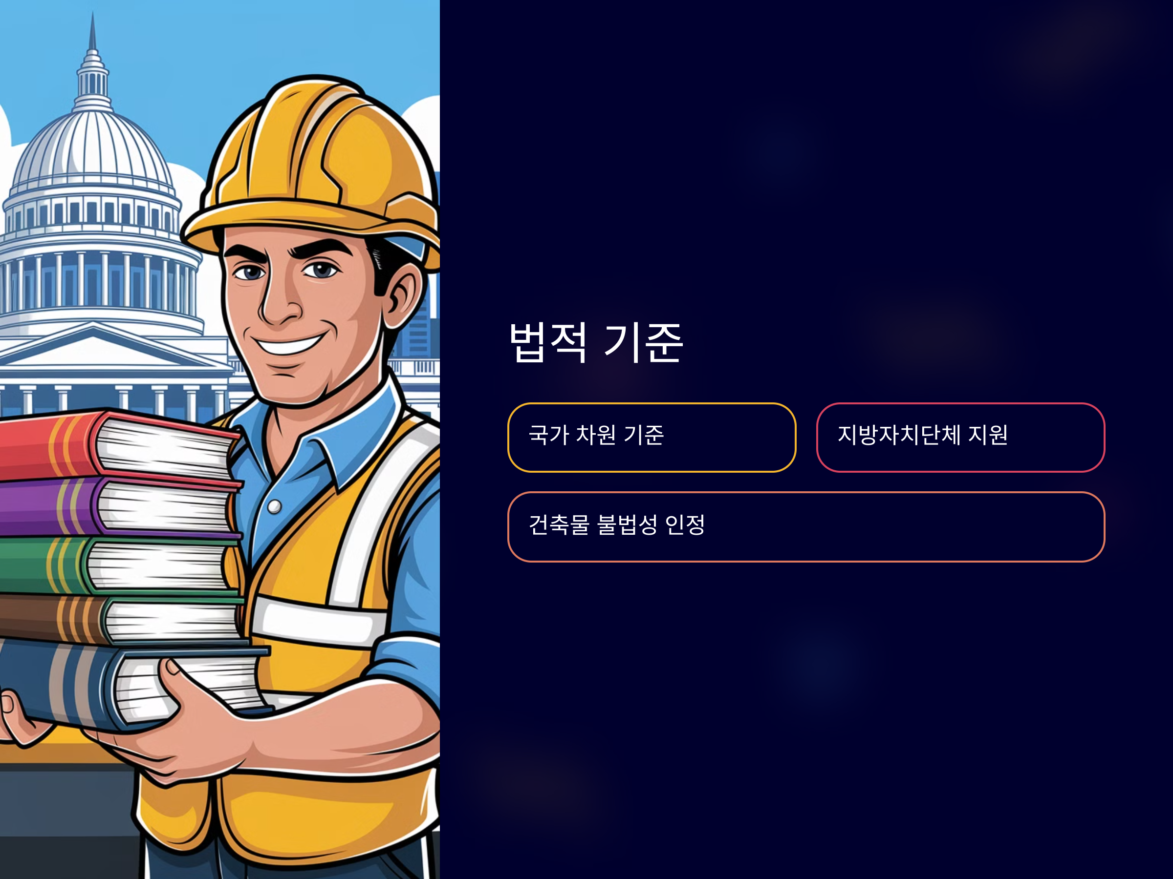 불법 건축물 신고 보상금에 대한 법적 기준은 각 지역의 건축법과 관련 법령에 따라 달라질 수 있습니다. 그러나 일반적으로 국가 차원에서 시행되는 보상금 지급 기준이 존재하며, 각 지방자치단체에서도 이를 지원하는 제도를 운영합니다.