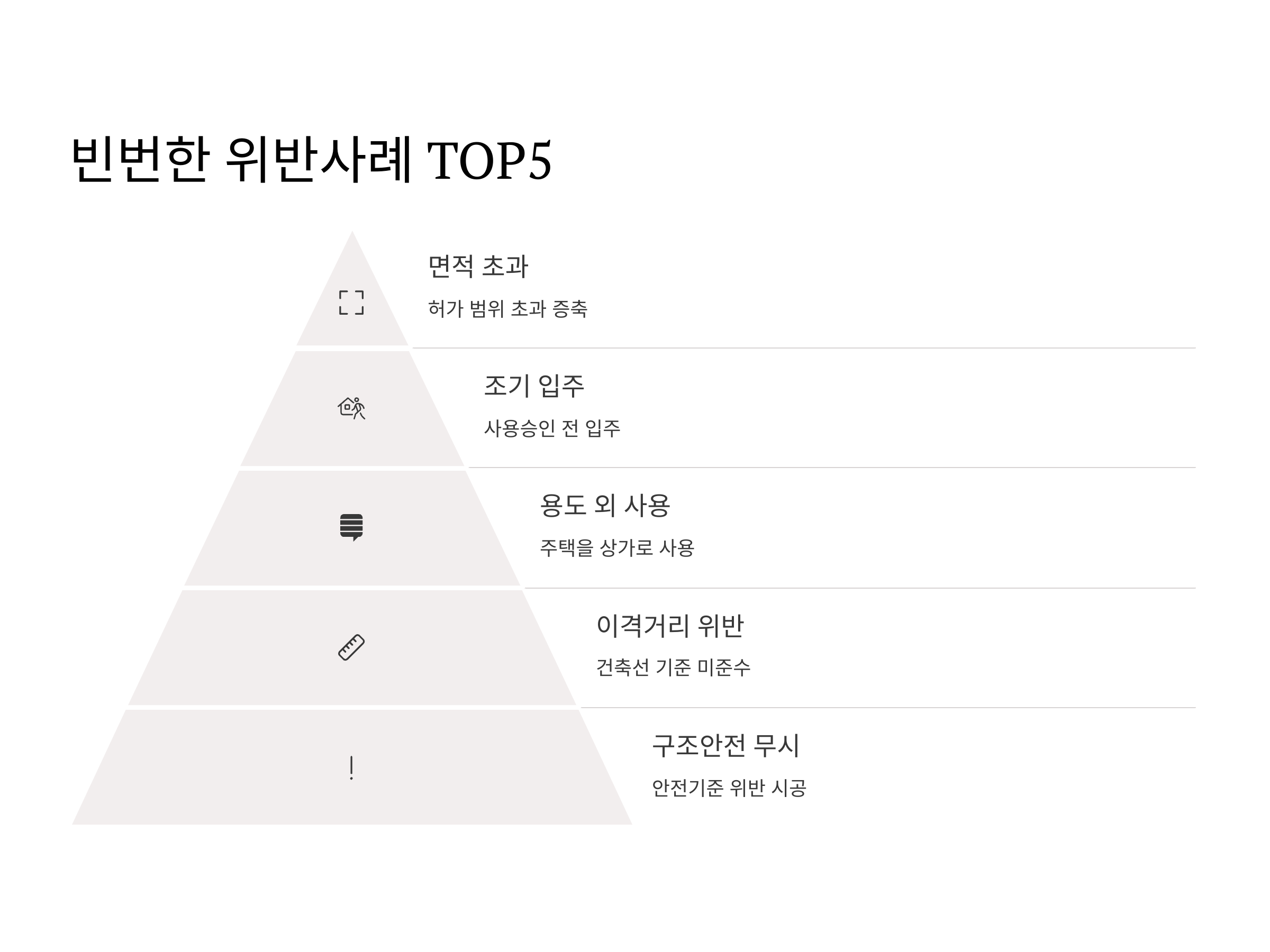 최근 개정된 「건축법」에서는 위반사항 적발 후 즉시 사용중지 명령을 내릴 수 있도록 하여 건축주와 시공사에게 더욱 엄격한 책임을 지우고 있습니다. 본 포스팅에서는 대표적인 건축허가 위반 사례들을 통해 어떤 실수가 문제가 되는지, 그리고 사전 예방을 위해 건축허가 신청 시 반드시 체크해야 할 포인트들을 구체적으로 짚어보겠습니다.