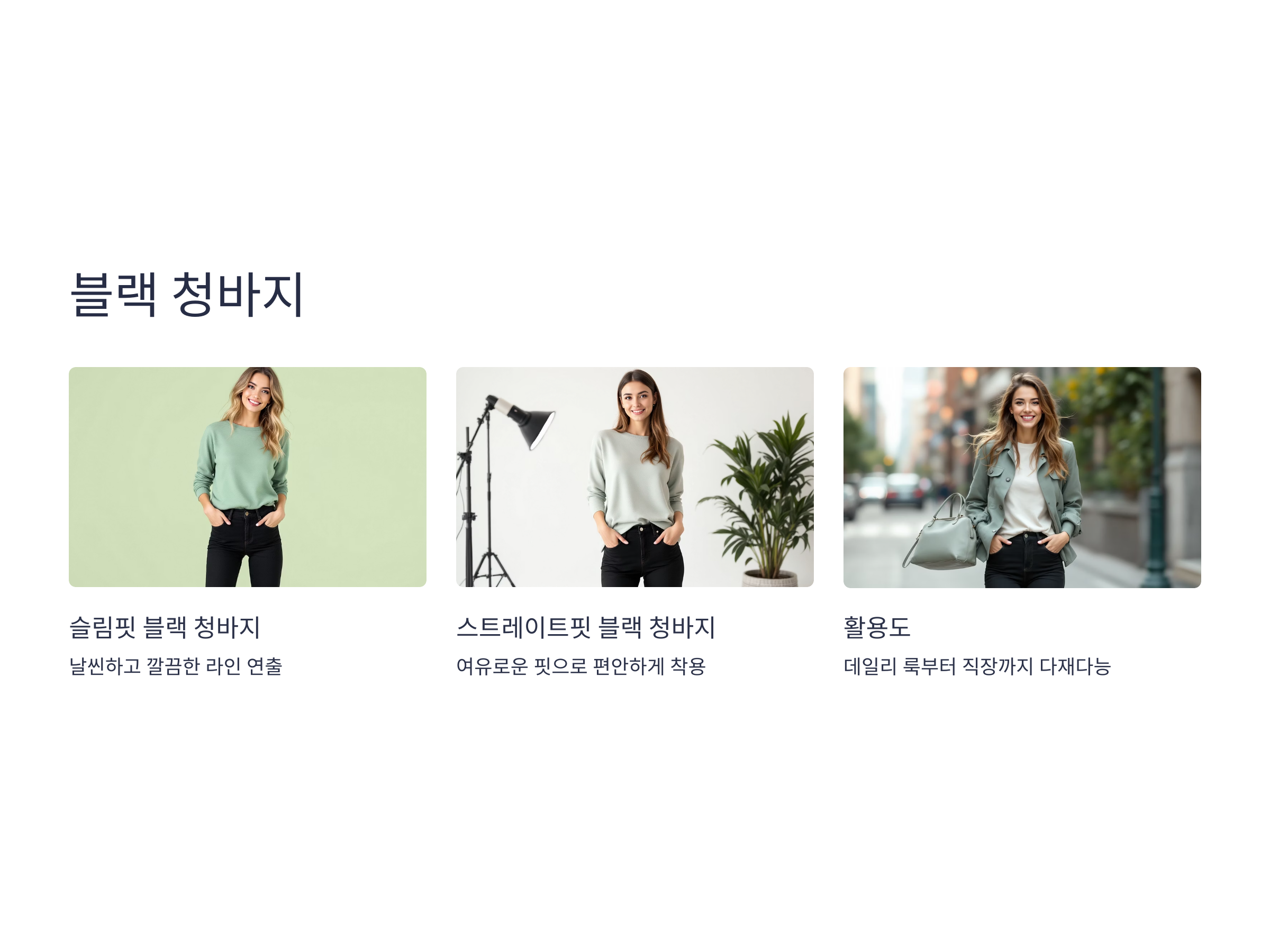 블랙 청바지는 필수 아이템 중 하나로, 데일리 룩에서부터 직장까지 활용 가능한 다재다능한 의류입니다. 블랙 청바지는 다른 색상보다 쉽게 스타일링할 수 있으며, 다양한 상의와 잘 어울려 많은 사람들이 즐겨 입습니다. 또한, 블랙은 날씬해 보이는 효과를 주기 때문에 체형 보완에도 유리합니다.