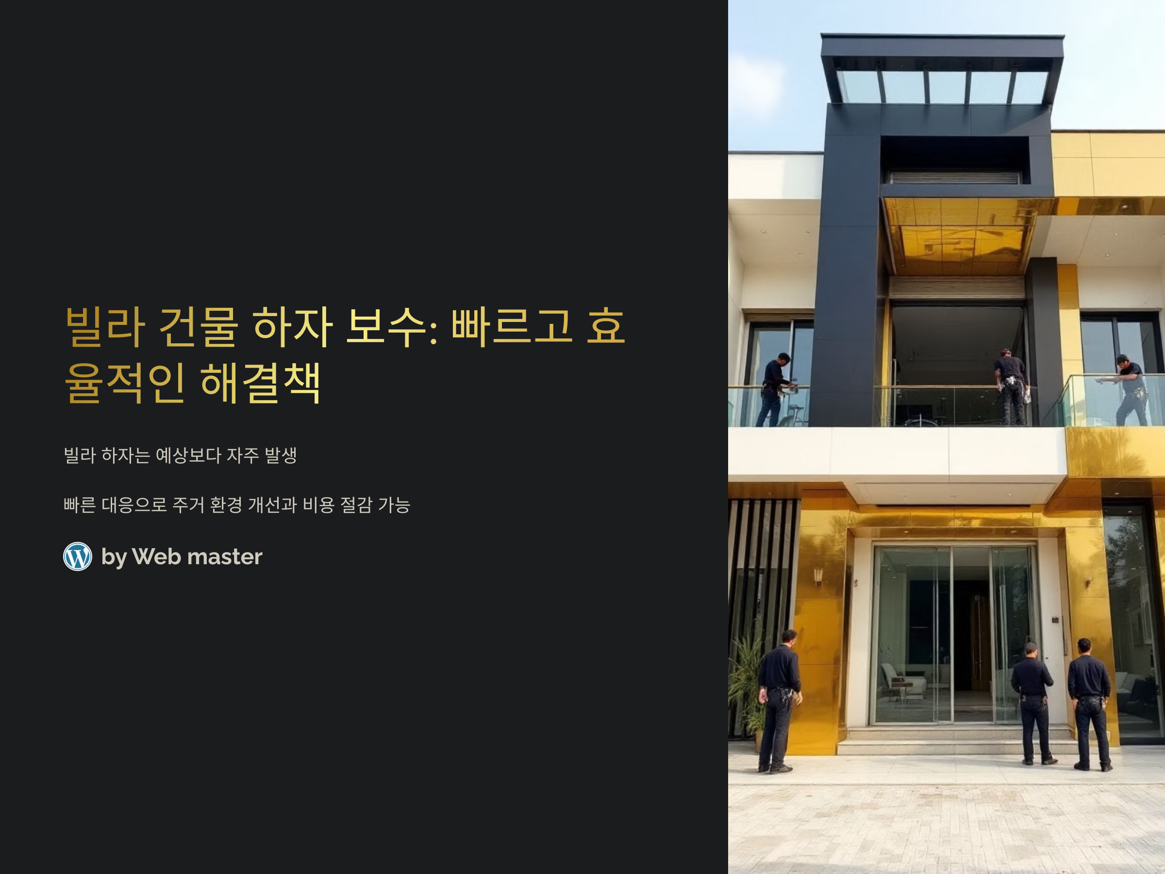 빌라 건물에서 발생하는 하자는 예상보다 더 자주 발생할 수 있으며, 이에 대한 빠르고 효과적인 대응이 필요합니다. 빌라에서 발생하는 다양한 하자들은 주거 환경을 불편하게 만들고, 장기적으로는 더 큰 비용을 초래할 수 있습니다. 이번 포스트에서는 빌라 건물 하자 보수의 중요성과 하자 발생 시 대처 방법을 안내드리겠습니다. 또한, 비용 절감과 빠른 해결을 위한 유용한 팁도 제공할 예정이니 참고하시기 바랍니다.