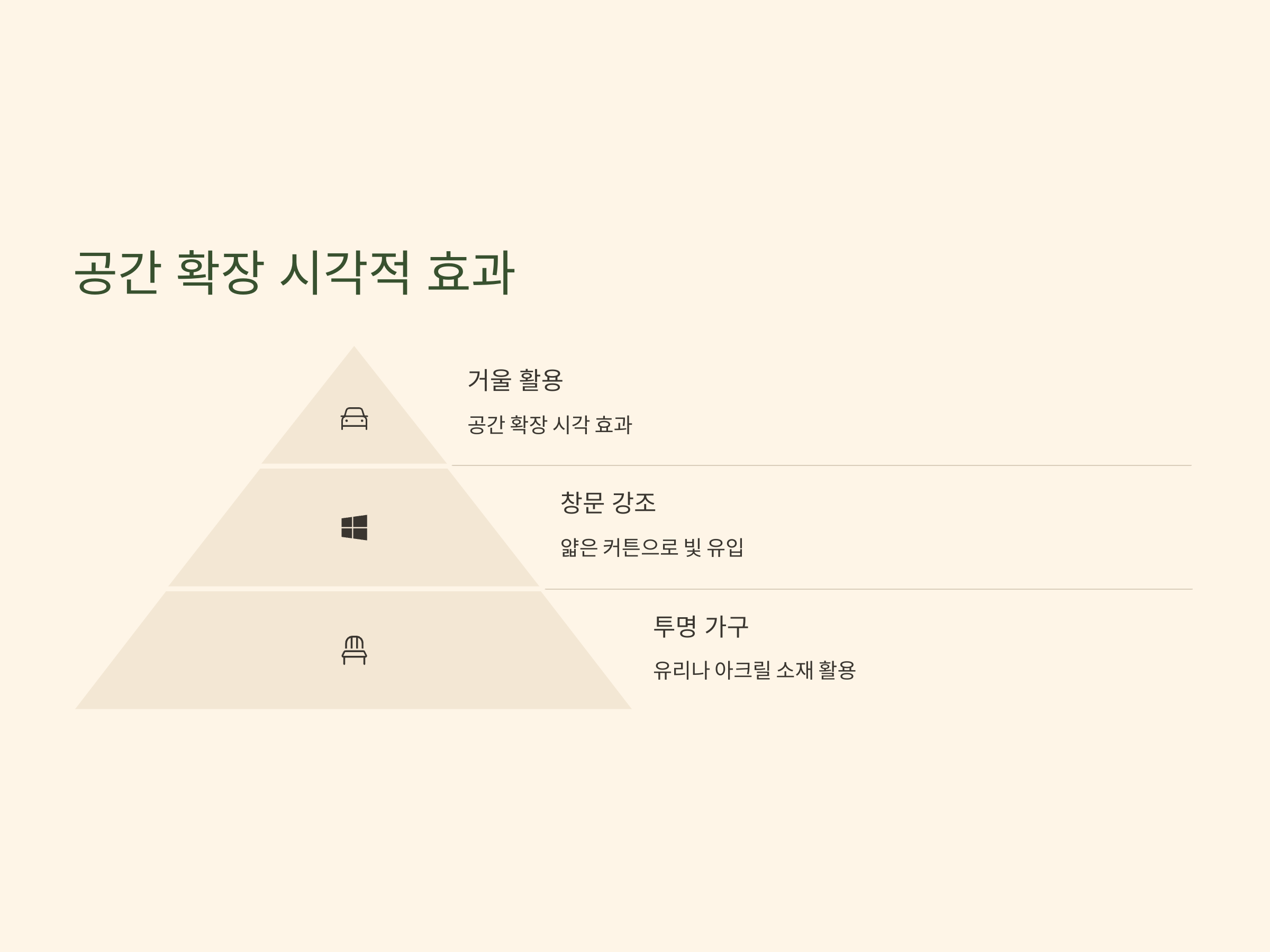 조명도 공간 확장에 중요한 역할을 합니다. 큰 조명보다는 다양한 크기의 조명을 사용하여 부드러운 빛을 만들어주면 공간이 아늑하게 변합니다. 예를 들어, 벽등이나 스탠드형 램프를 활용하여 공간을 한층 더 감각적으로 꾸밀 수 있습니다. 또, 조명 위치를 잘 설정하면, 특정 공간을 강조하거나 공간을 더욱 넓게 보이게 만들 수 있습니다.