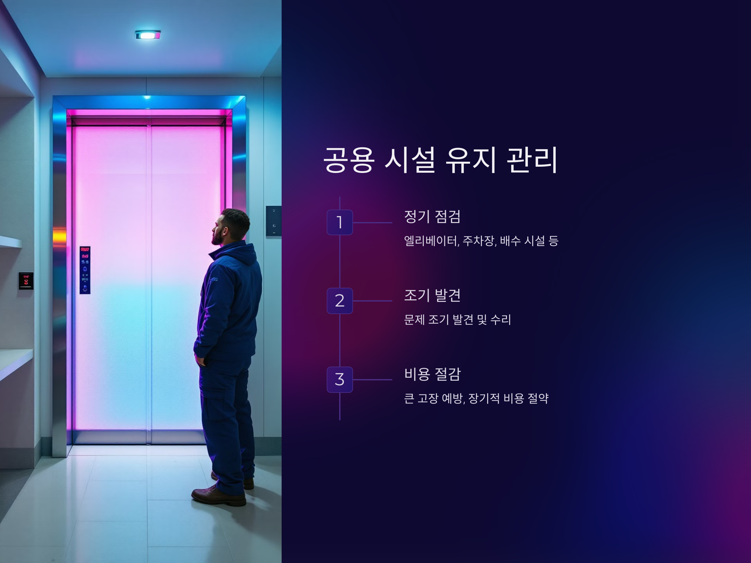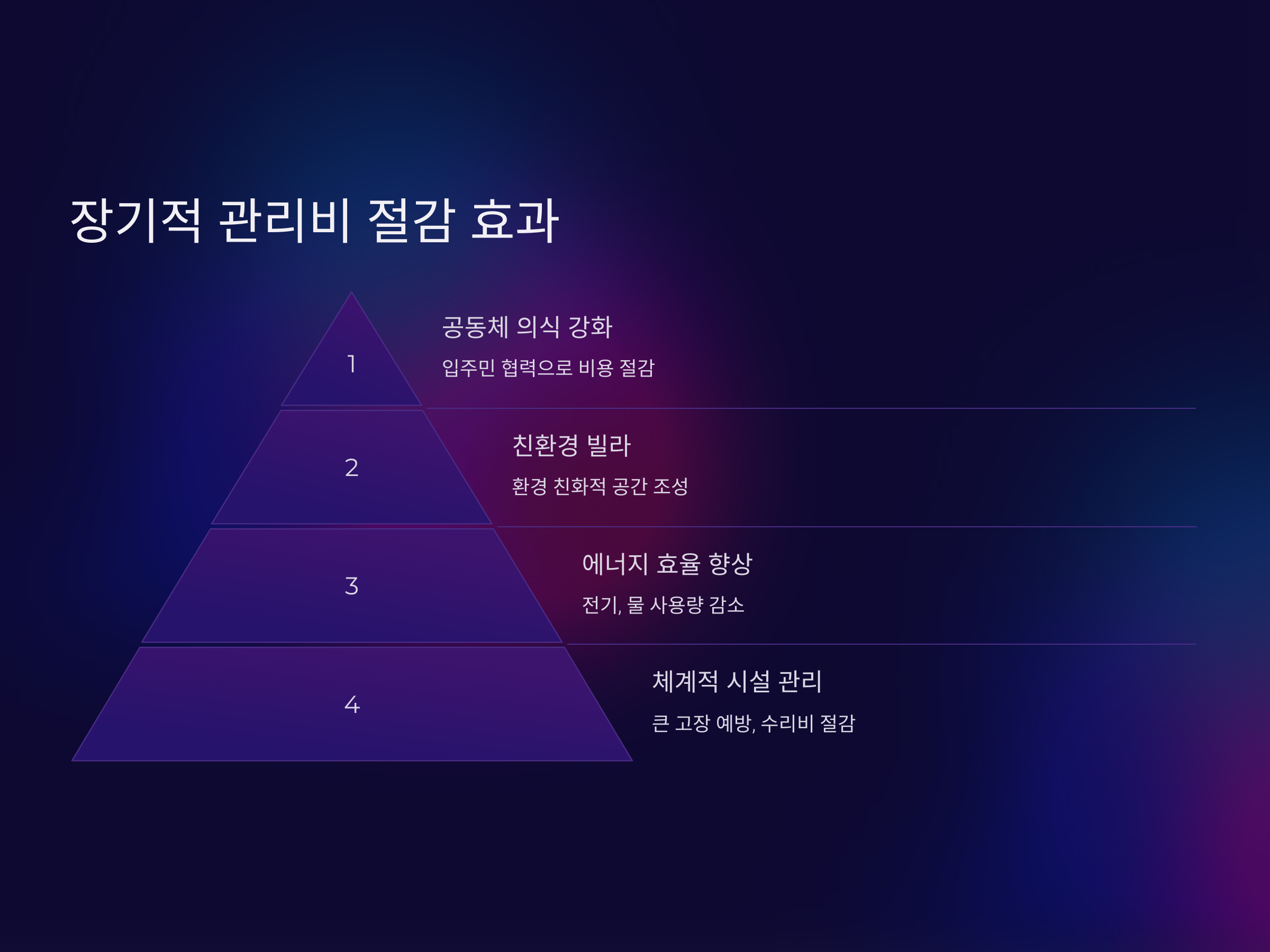 공용 시설의 정기적인 유지 관리는 큰 고장이나 고액의 수리비를 예방하는 데 중요합니다. 엘리베이터, 주차장, 배수 시설 등의 점검을 정기적으로 실시하고, 문제를 조기에 발견하여 수리하면 장기적으로 더 많은 비용을 절감할 수 있습니다. 이러한 정기 점검은 초기 비용이 들지만, 장기적으로는 큰 수리비용을 절약할 수 있어 결과적으로 관리비 절감에 큰 도움이 됩니다