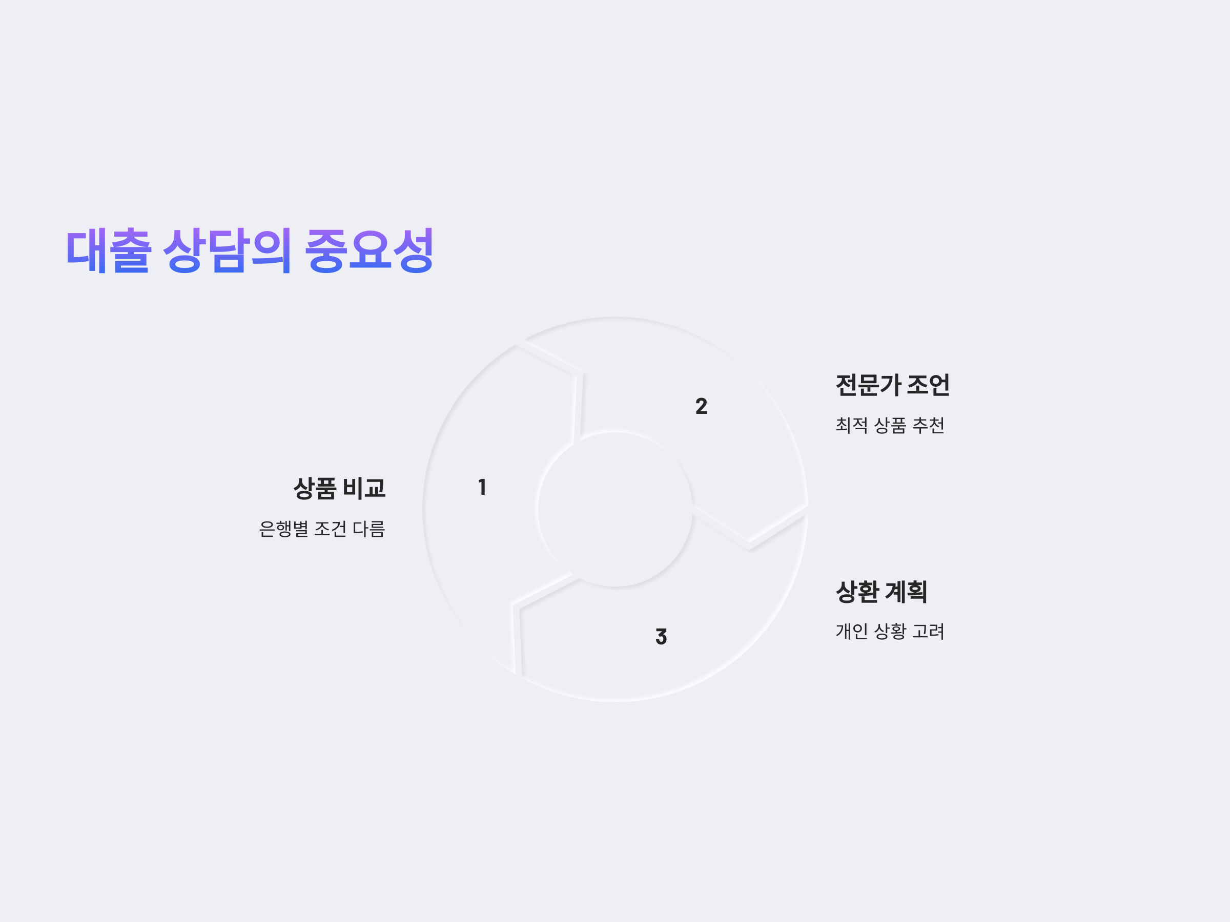 대출 상담을 받는 것이 중요한 이유는, 은행별로 제공하는 대출 상품의 조건이 다르기 때문입니다. 전문가의 상담을 통해, 자신에게 맞는 최적의 대출 상품을 찾을 수 있습니다. 각 은행의 대출 상품을 비교하고, 상환 계획을 세운 후 대출을 받는 것이 좋습니다.