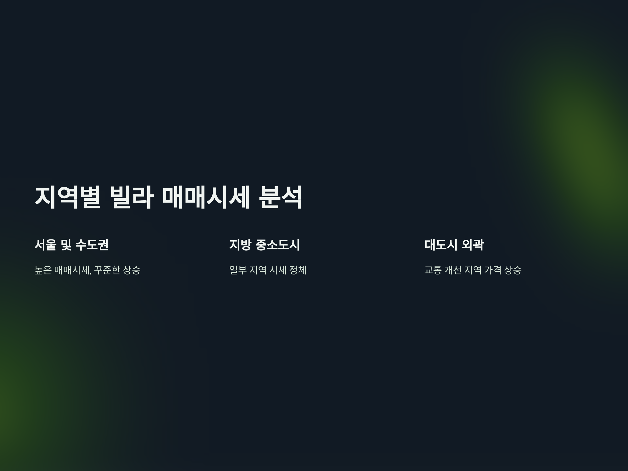 이러한 변화는 매매시세를 일정 부분 끌어올리는 요인으로 작용했습니다. 특히, 대도시 내 외곽지역은 인프라 확장과 더불어 가격 상승이 두드러지며, 일부 지역에서는 매매가가 크게 상승했습니다. 예를 들어, 서울 근교나 경기 수도권의 빌라는 가격 상승이 두드러지며, 내집 마련을 원하는 수요가 많아지면서 시세가 상승하는 추세입니다.