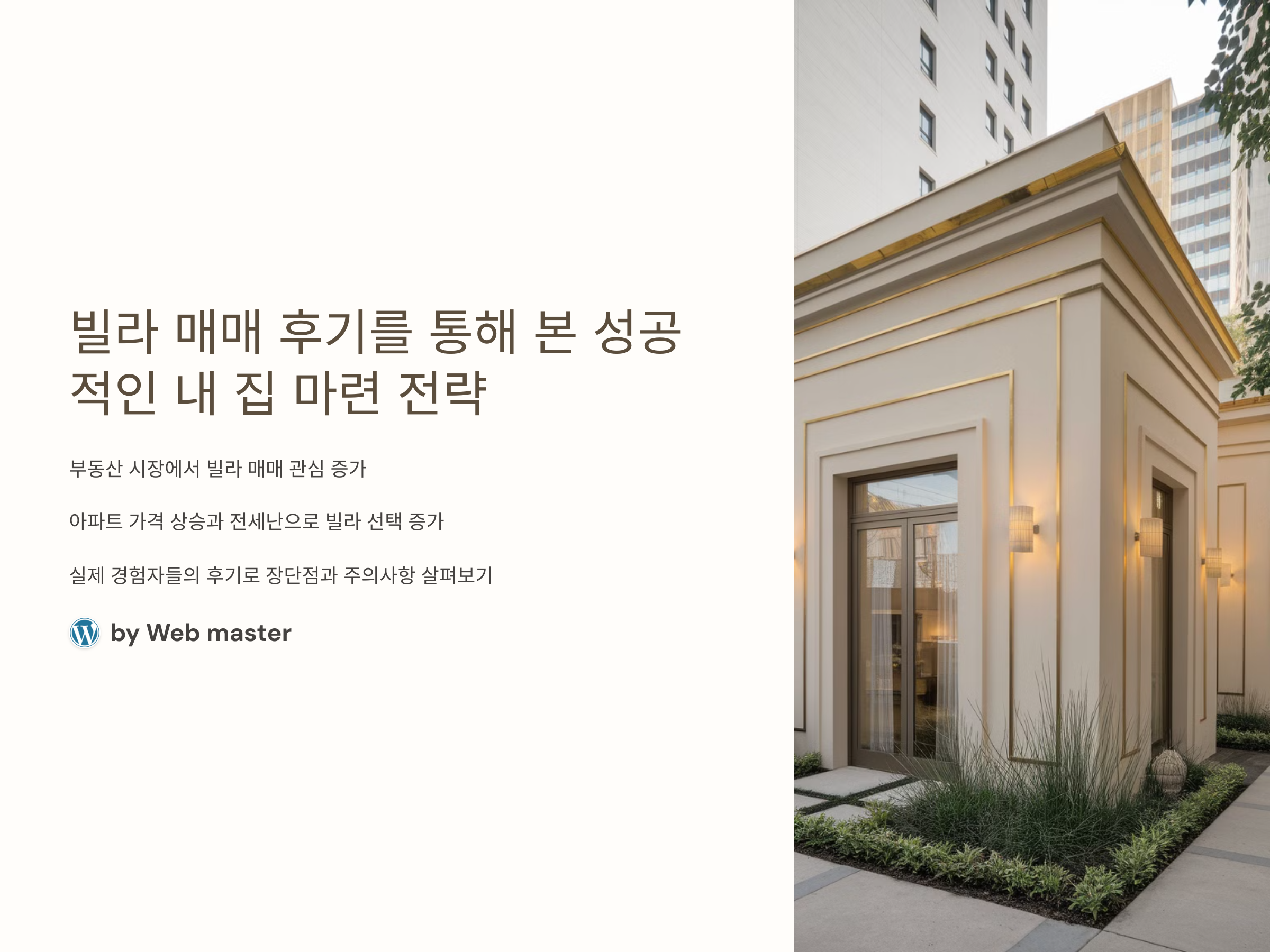 최근 부동산 시장에서 빌라 매매에 대한 관심이 높아지고 있습니다. 아파트 가격 상승과 전세난으로 인해 빌라를 선택하는 분들이 늘어나고 있는데요. 하지만 빌라 매매에는 여러 가지 고려해야 할 사항들이 있습니다. 실제 경험자들의 후기를 통해 빌라 매매의 장단점과 주의사항을 살펴보겠습니다.