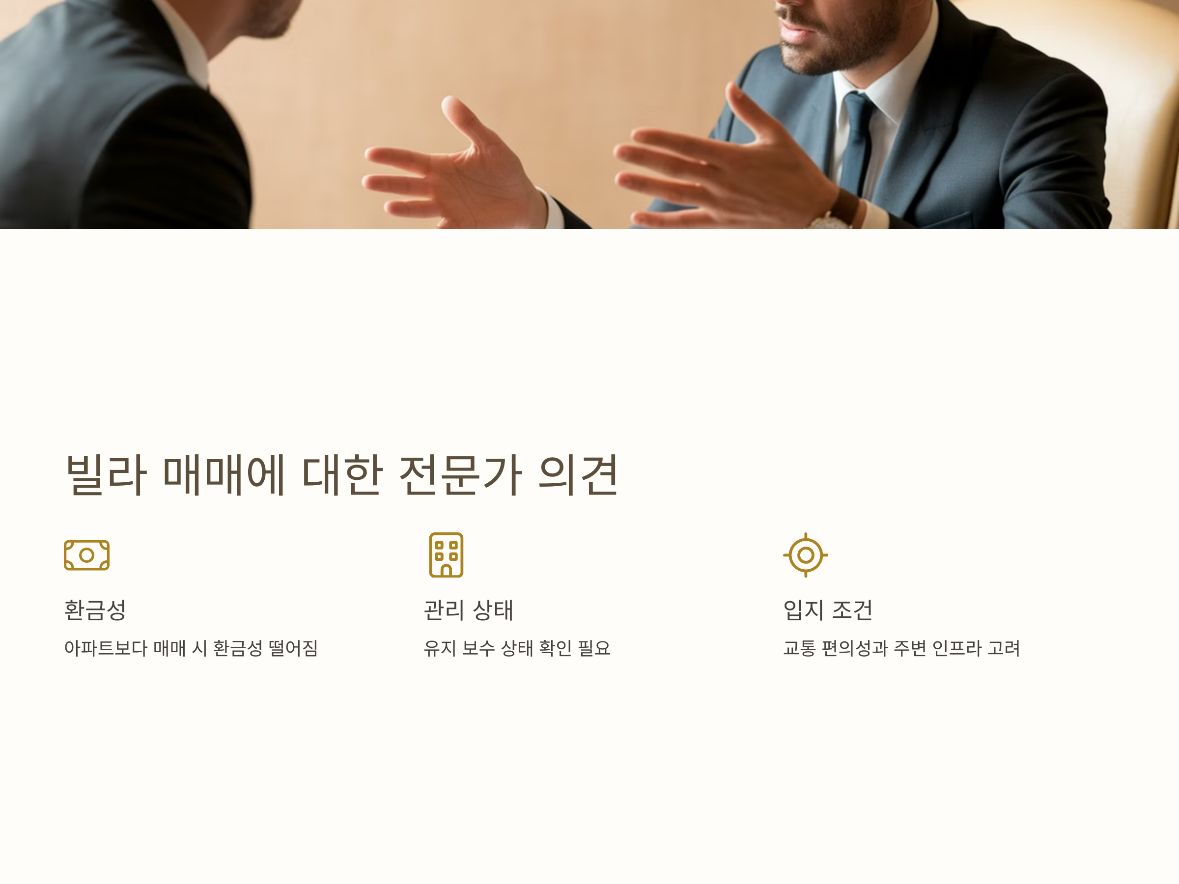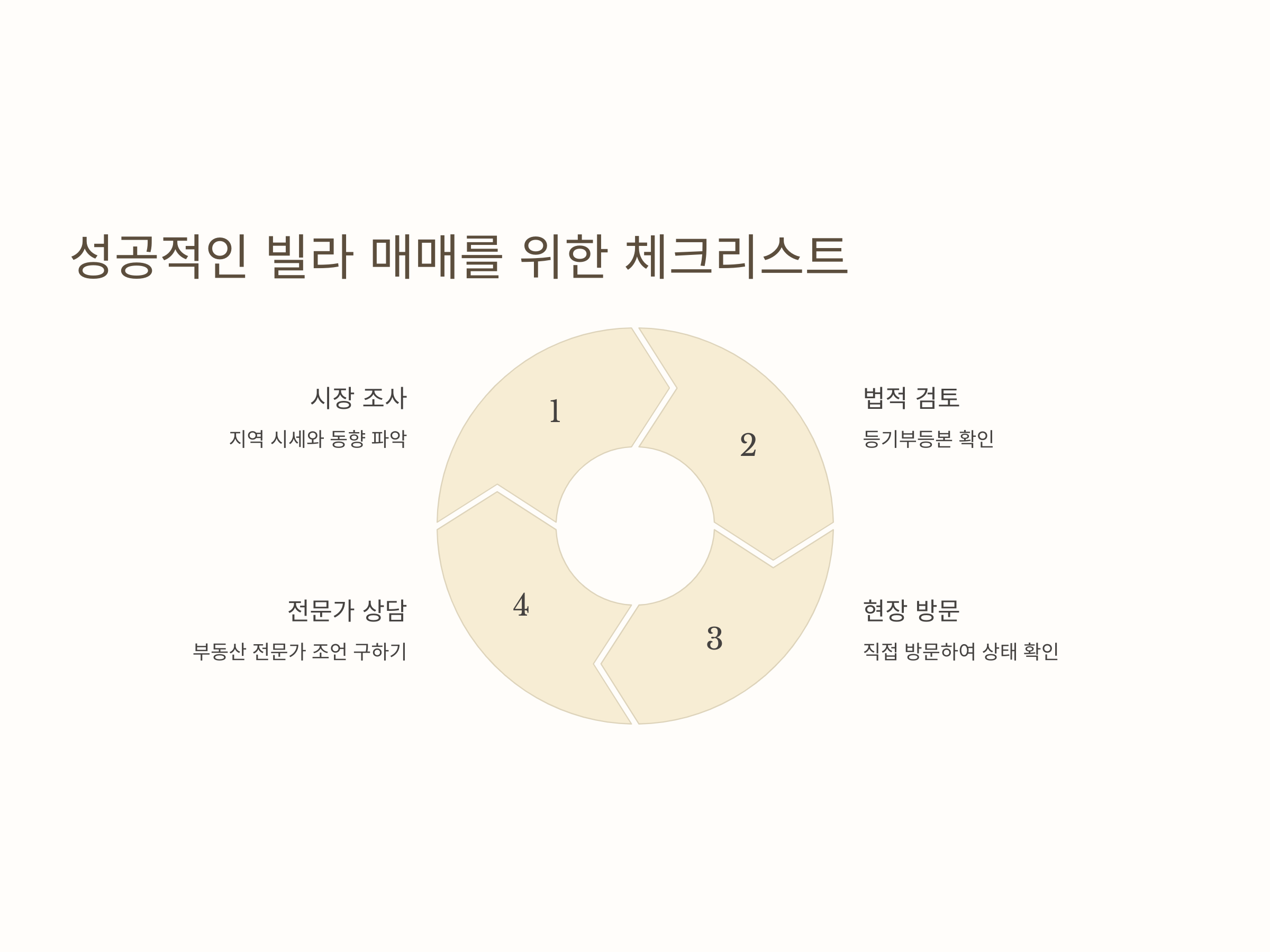 전문가들은 빌라 매매 시 다음과 같은 점들을 강조합니다: