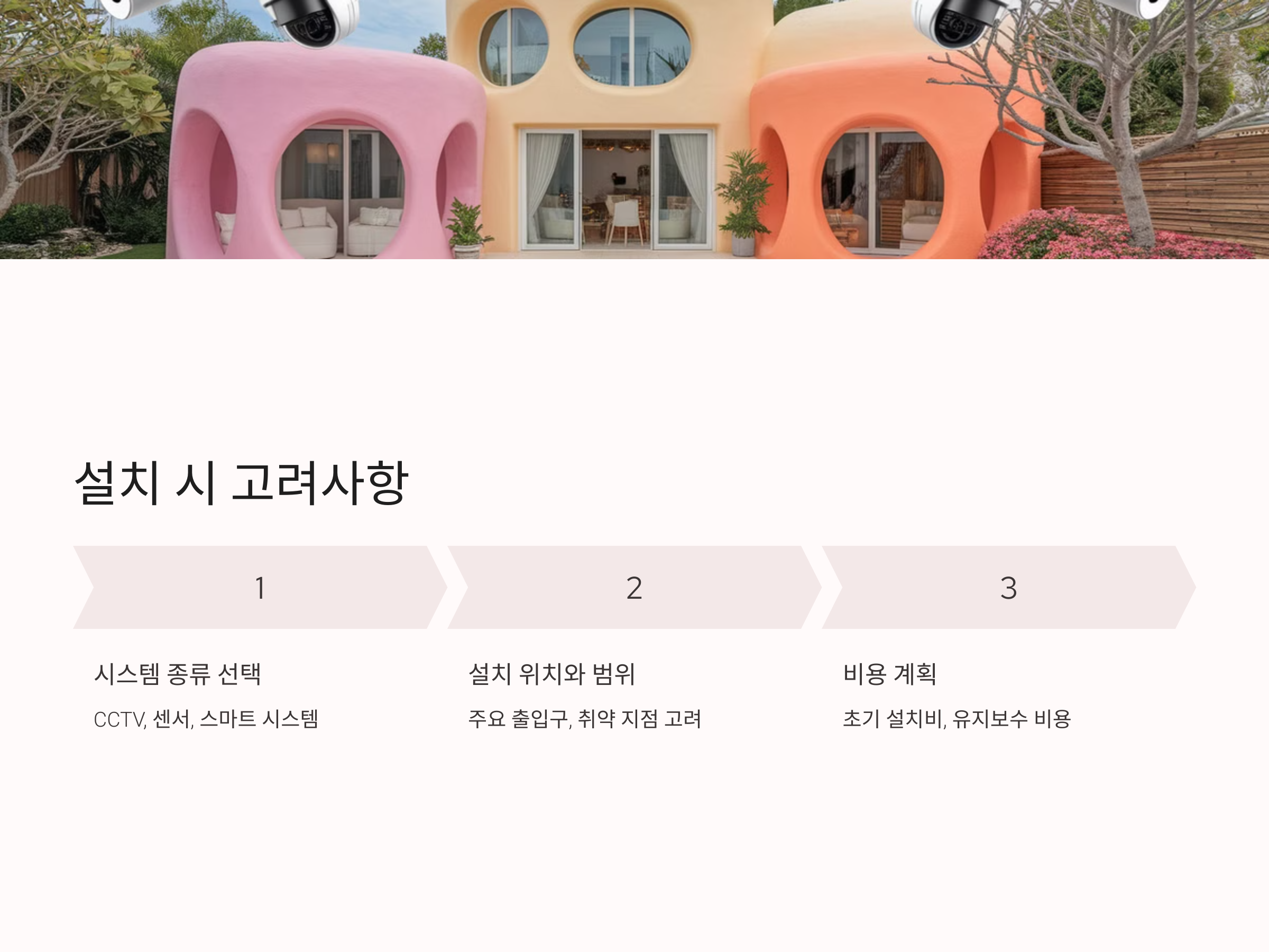 빌라 방범 시스템은 단순한 보안 장치가 아니라, 여러분의 삶과 재산을 보호하는 중요한 요소입니다. 다양한 방범 시스템을 잘 활용하고 꾸준히 관리하여, 안전한 생활을 지킬 수 있도록 하세요.