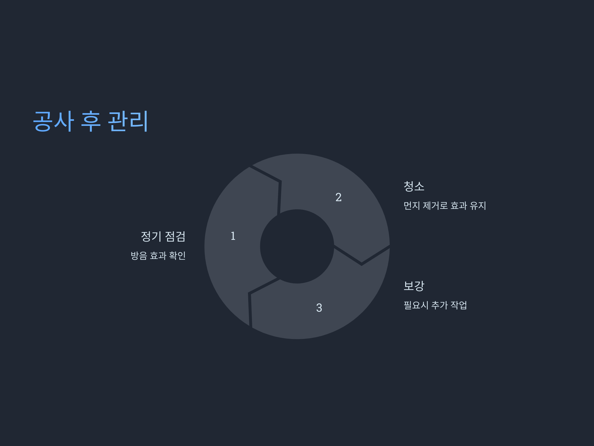방음공사를 진행한 후에는 꾸준한 관리와 유지가 필요합니다. 방음효과가 오래 지속될 수 있도록, 주기적으로 점검하고 관리하는 것이 중요합니다.
