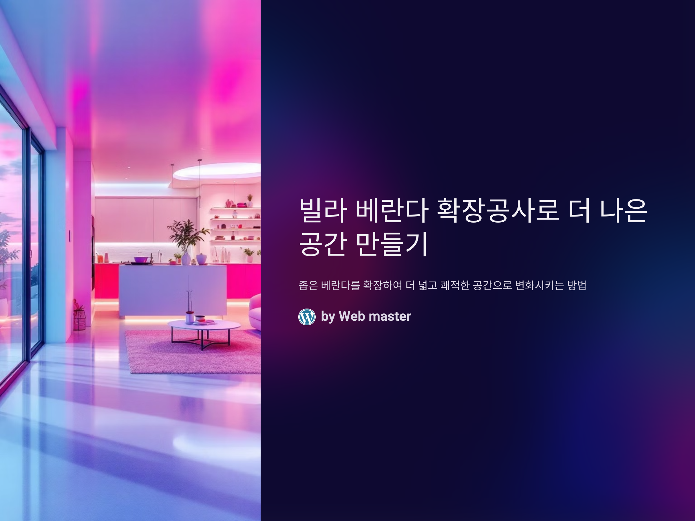 빌라에서 거주하다 보면 베란다가 좁아 답답하게 느껴질 때가 많습니다. 또한, 외부 환경에 의한 소음이나 온도 변화로 인해 불편함을 겪기도 합니다. 이러한 문제를 해결할 수 있는 방법 중 하나가 바로 베란다 확장공사입니다. 베란다를 확장하면 집안 공간을 넓히고, 더 쾌적하게 사용할 수 있습니다. 이 글에서는 빌라 베란다 확장공사에 대한 비용, 절차, 주의사항 등을 자세히 안내해 드립니다. 이 정보를 통해 더 나은 공간을 만들고, 실용적인 활용을 할 수 있는 방법을 알아보세요.