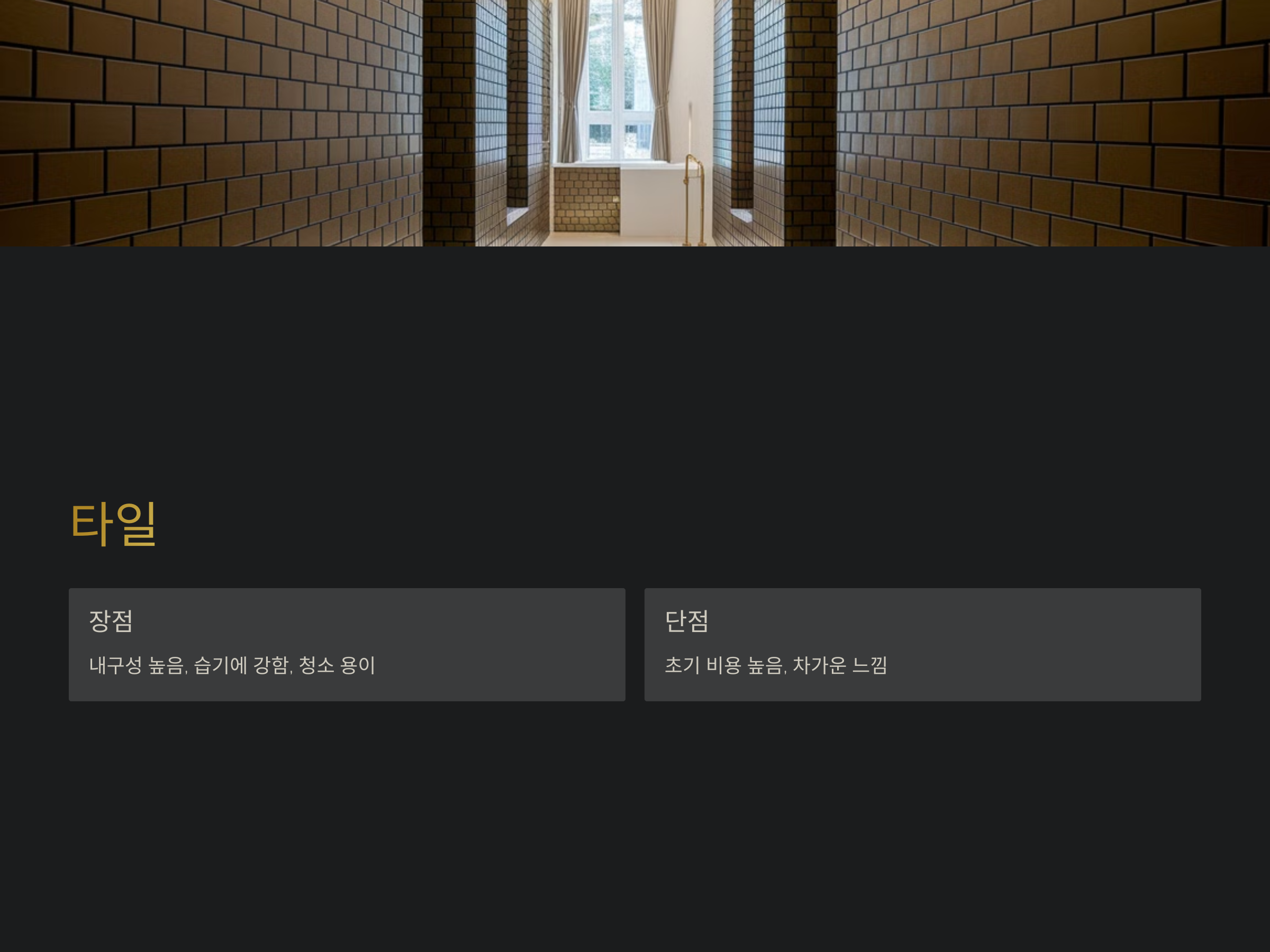 - 차가운 느낌: 일부 타일은 차가운 느낌을 줄 수 있어, 온도 변화에 민감할 수 있습니다.