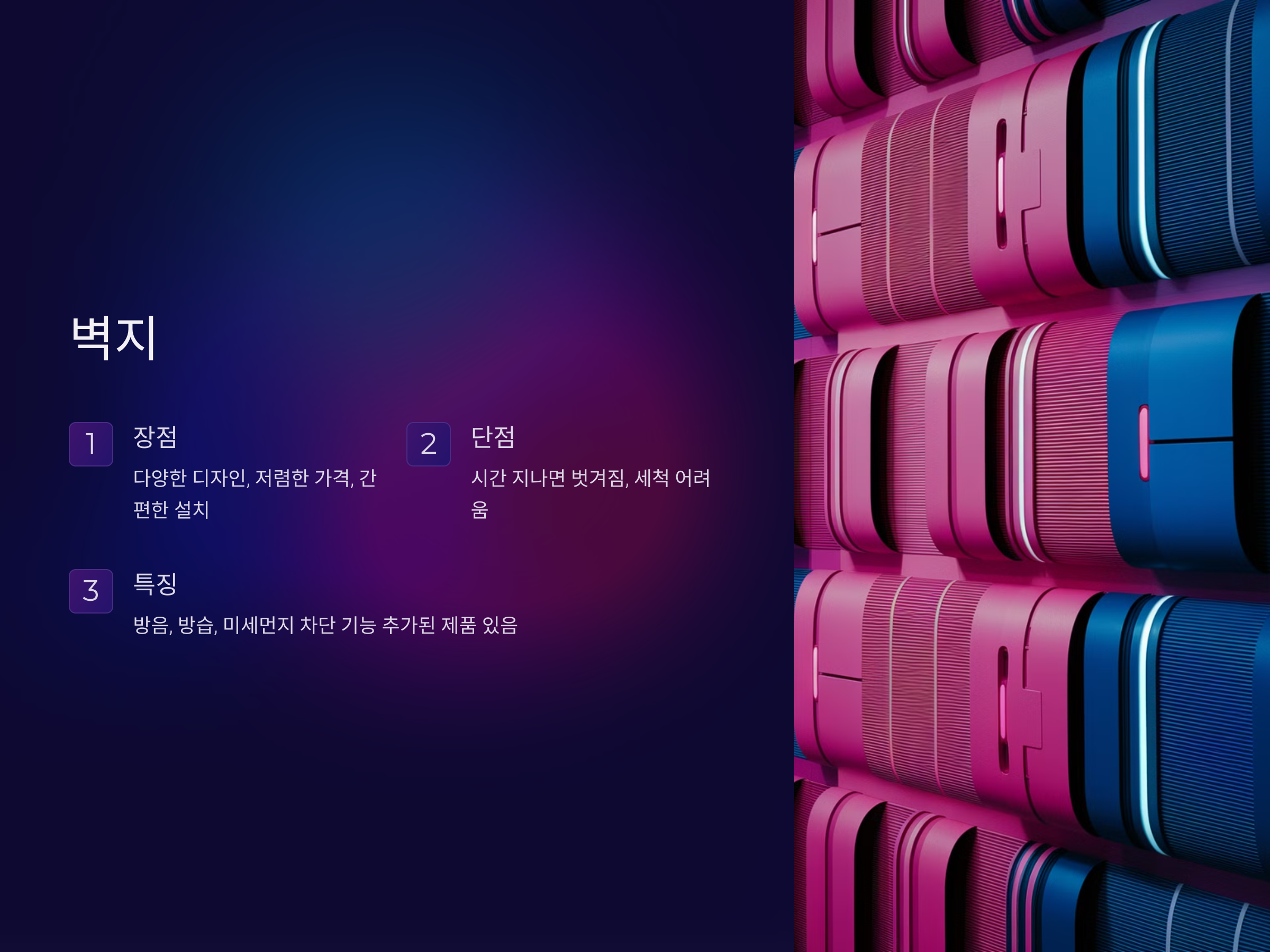 벽지는 가장 흔하게 사용되는 마감재로, 다양한 디자인과 색상으로 선택할 수 있습니다. 벽지는 설치가 간편하고, 비교적 저렴한 가격에 구할 수 있기 때문에 예산을 절감하고자 할 때 좋은 선택이 될 수 있습니다. 또한, 벽지는 다양한 질감과 패턴을 통해 인테리어 스타일을 완성할 수 있는 장점이 있습니다. 특히, 요즘은 방음, 방습, 미세먼지 차단 기능이 추가된 고급 벽지도 많이 나오기 때문에 더욱 실용적입니다.