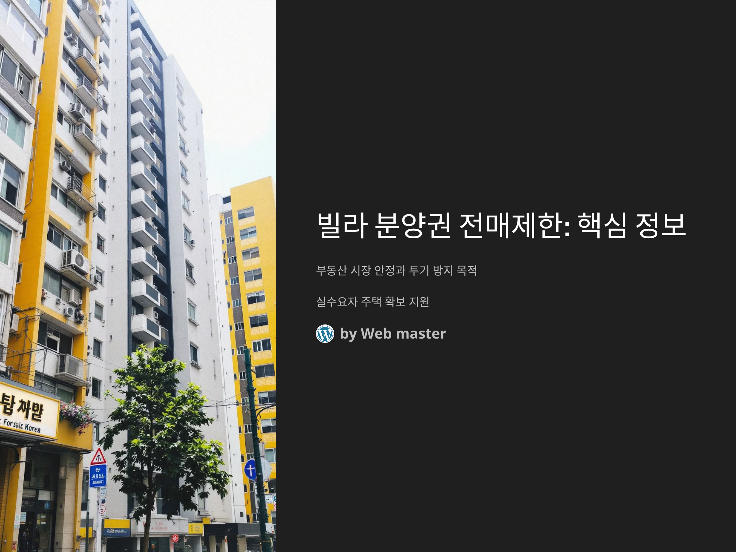 빌라 분양권 전매제한은 부동산 시장의 안정과 투기 방지를 위해 정부가 설정한 규제입니다. 이는 분양권을 일정 기간 동안 다른 사람에게 양도하거나 매매하는 행위를 제한하여, 실수요자들이 주택을 안정적으로 확보할 수 있도록 돕는 역할을 합니다.