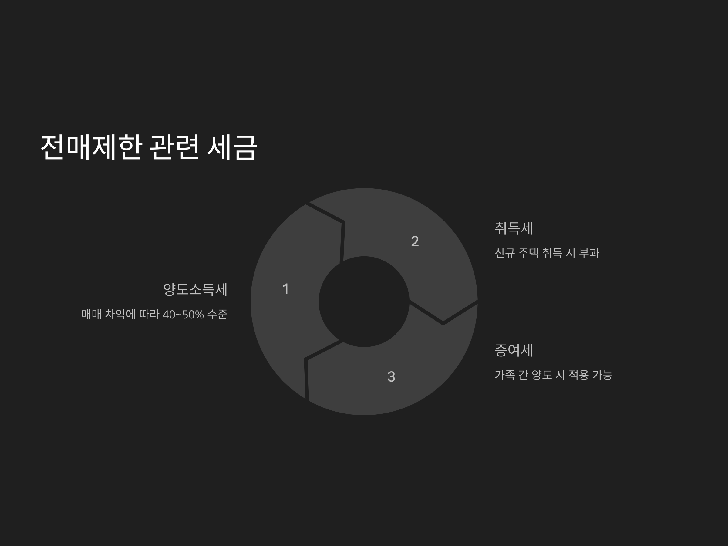 이 외에도 정부 정책에 따라 예외적으로 전매가 허용되는 경우가 있으므로, 정확한 법령을 확인하는 것이 중요합니다.