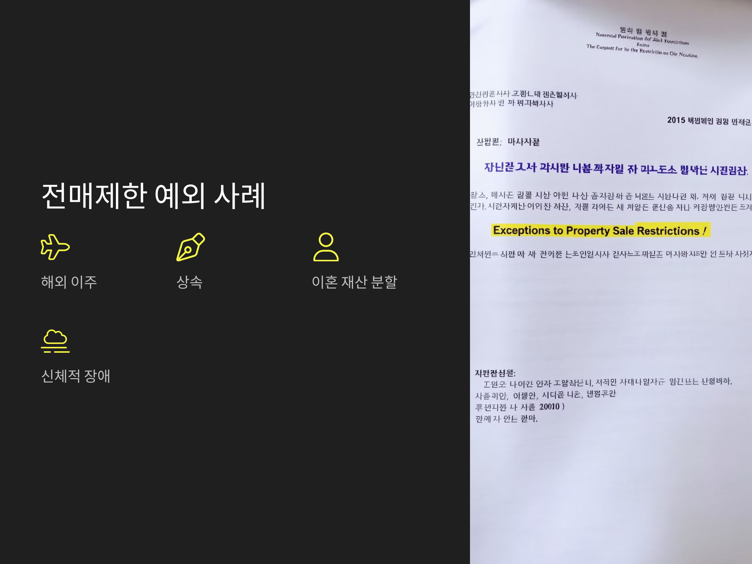 A. 예외적인 경우(상속, 해외 이주, 이혼 등)에는 가능하지만, 일반적인 경우에는 전매가 제한됩니다.