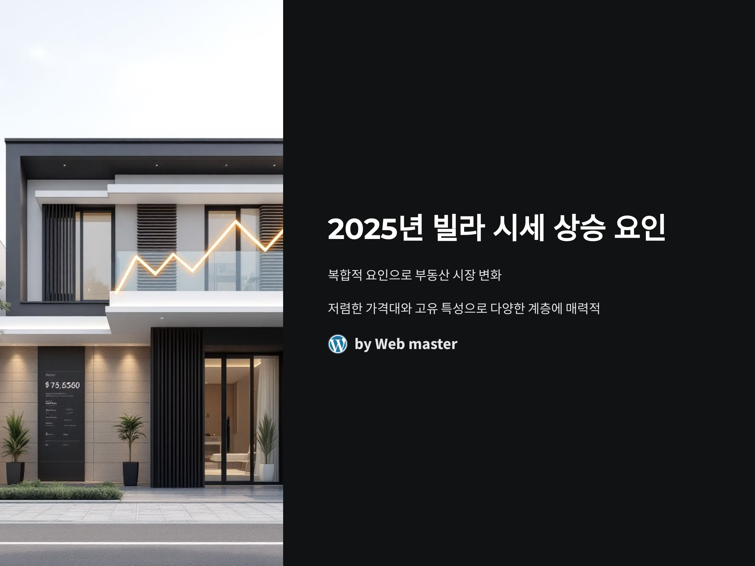 빌라 시세 상승은 단순히 한두 가지 이유에서 비롯된 것이 아닙니다. 2025년을 맞이하며 여러 복합적인 요인이 작용하고 있으며, 이러한 요인들은 부동산 시장을 더 복잡하고 예측하기 어려운 양상으로 이끌고 있습니다. 빌라는 상대적으로 저렴한 가격대와 함께 자신만의 고유한 특성을 가진 주택 유형으로, 다양한 계층의 수요자들에게 매력적인 선택지가 되고 있습니다. 그럼에도 불구하고 시세 상승을 이끄는 주요 원인들은 무엇일까요? 지금부터 그 요인들을 분석해보겠습니다.