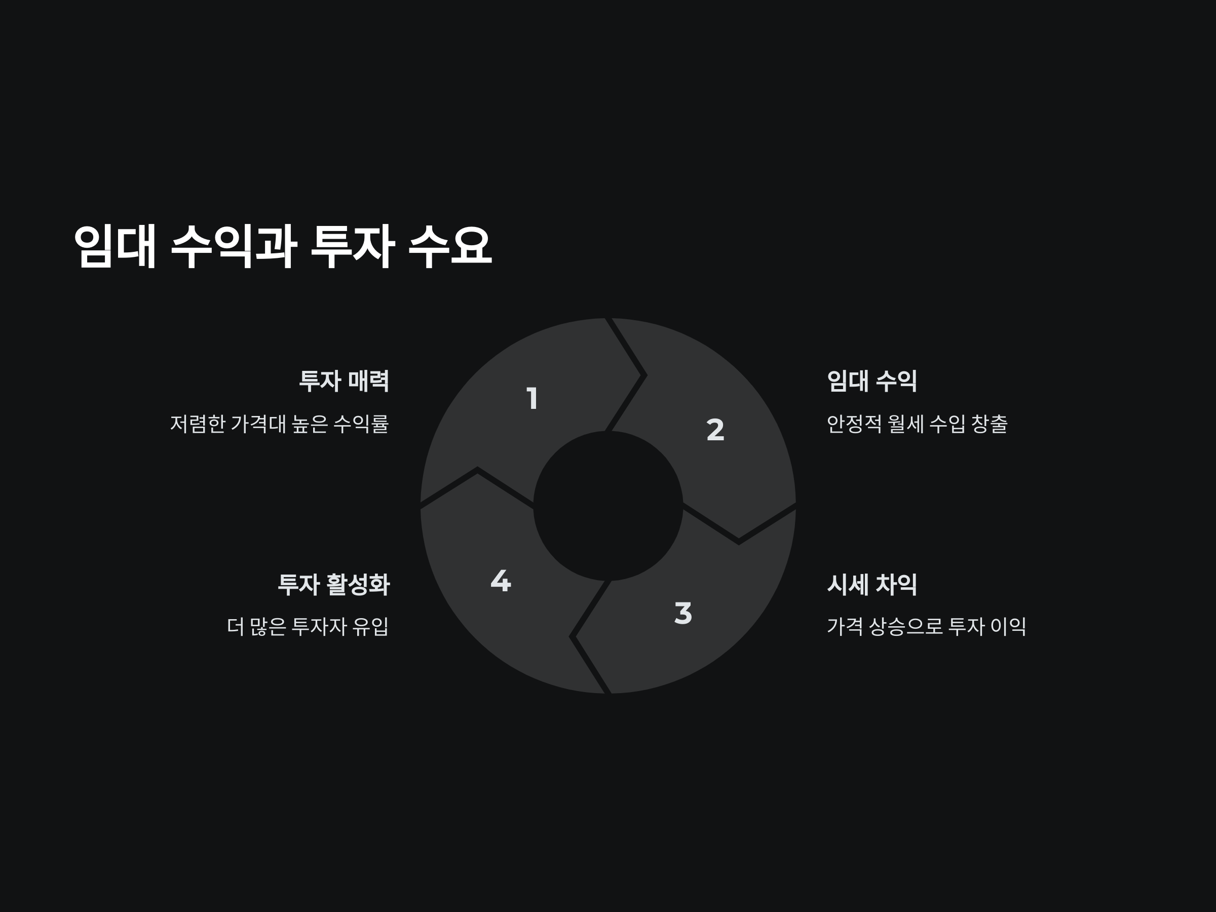 최근 몇 년간 시세 상승과 함께 임대 수익률이 높아지자, 빌라에 대한 투자가 활성화되었습니다. 이러한 투자 수요는 시세를 더욱 상승시키는 원동력이 되고 있으며, 특히 상대적으로 가격이 저렴한 빌라가 좋은 수익을 기대할 수 있는 자산으로 자리 잡고 있습니다.