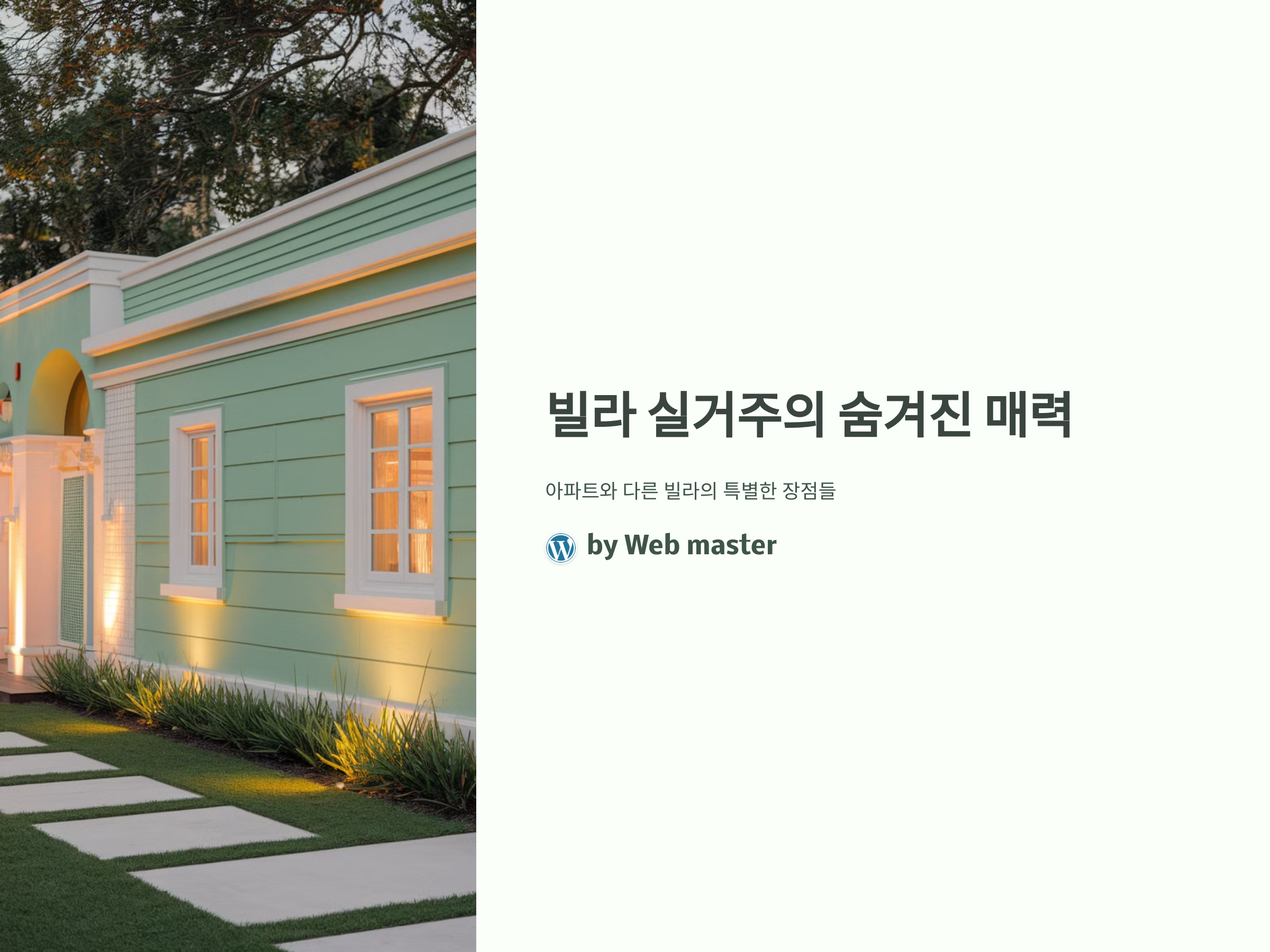 최근 부동산 시장에서 빌라에 대한 관심이 높아지고 있습니다. 아파트와 비교하여 빌라는 어떤 매력을 가지고 있을까요? 이번 글에서는 빌라 실거주의 장점들을 상세하게 살펴보겠습니다.