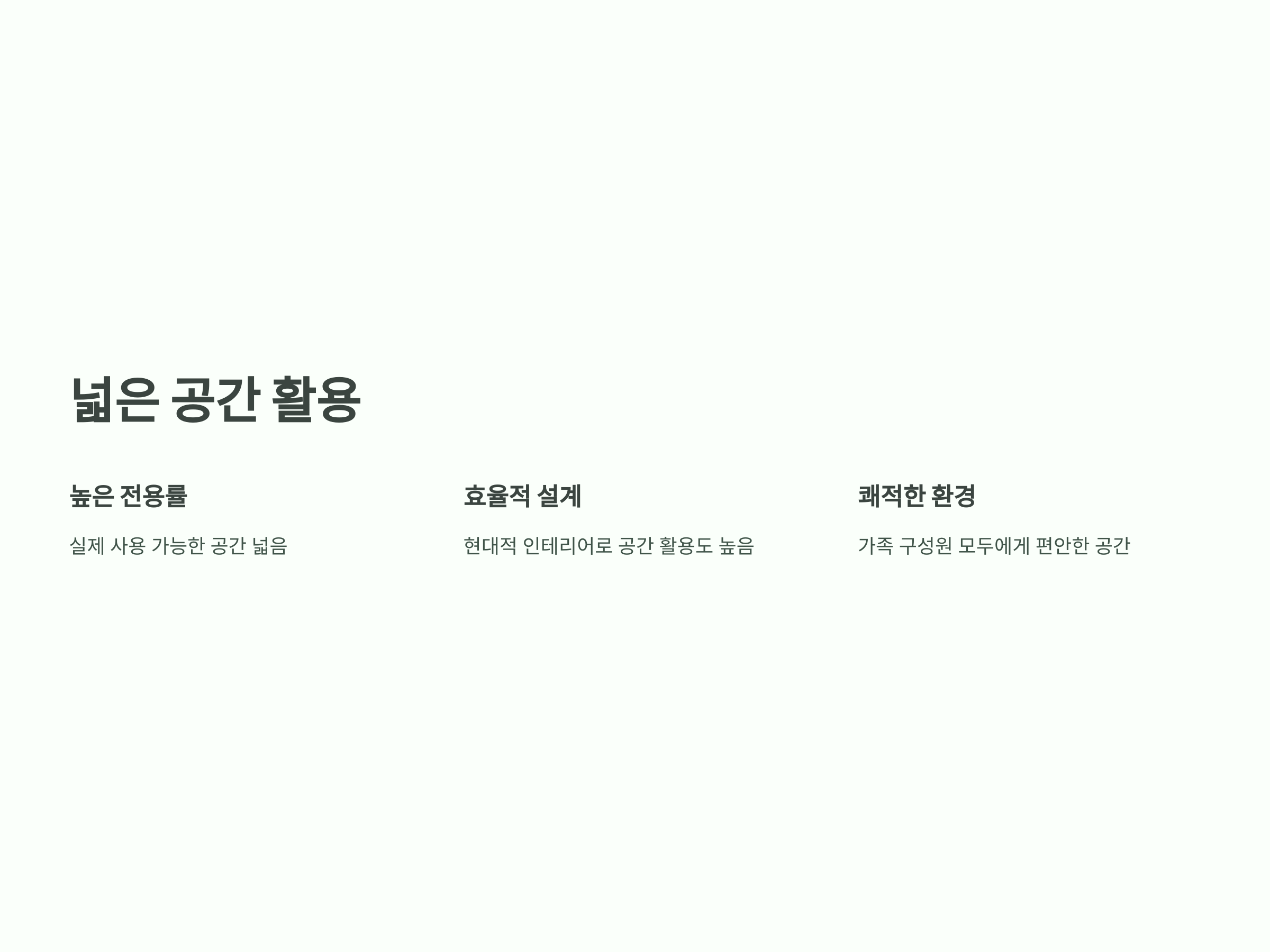 빌라는 오피스텔이나 아파트에 비해 전용률이 높아 실제 사용 가능한 공간이 넓습니다. 이는 주거공간의 효율성을 높여 가족 구성원 모두에게 쾌적한 생활 환경을 제공합니다. 특히, 신축 빌라의 경우 현대적인 인테리어와 설계로 공간 활용도가 더욱 높아지고 있습니다. citeturn0search2
