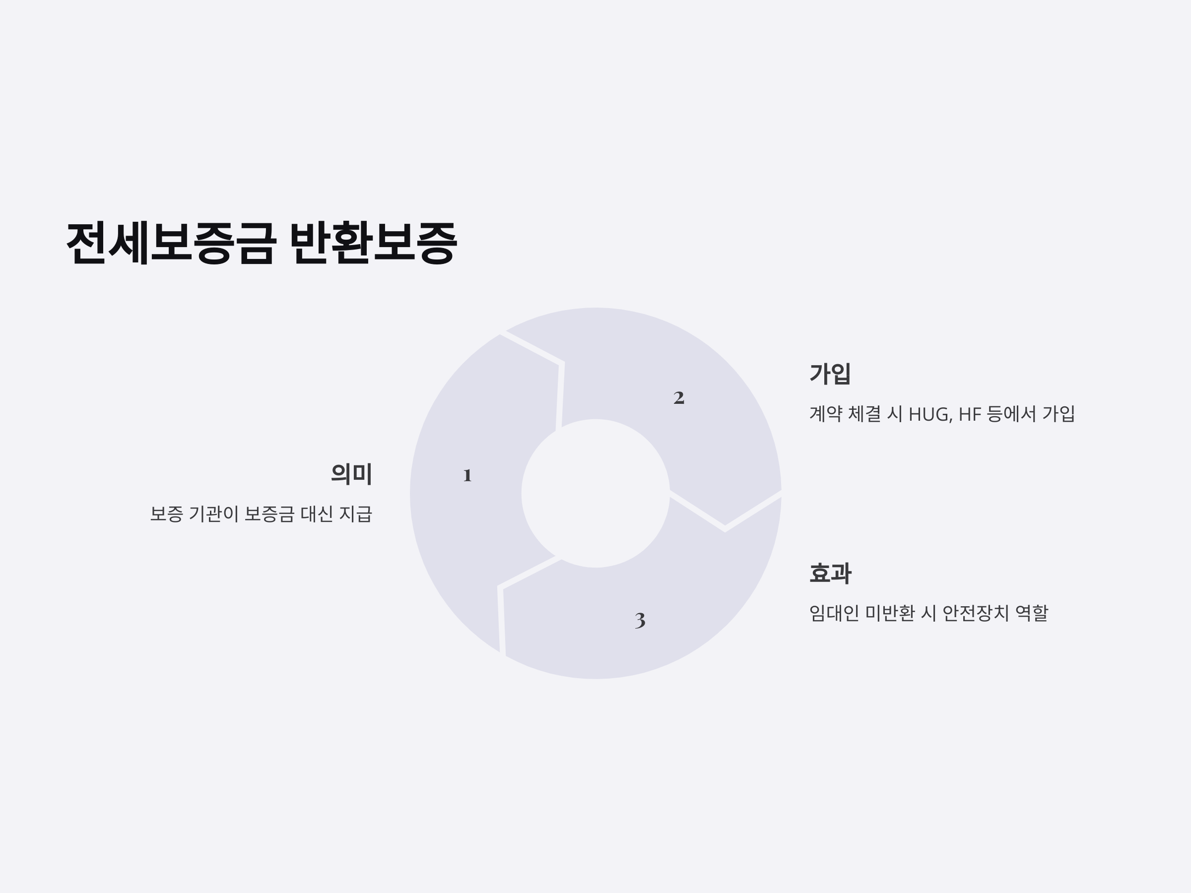 - 전세보증금 반환보증이란: 임대인이 보증금을 반환하지 않을 경우, 보증 기관이 임차인에게 보증금을 대신 지급하고, 이후 임대인에게 구상권을 행사하는 제도입니다.
