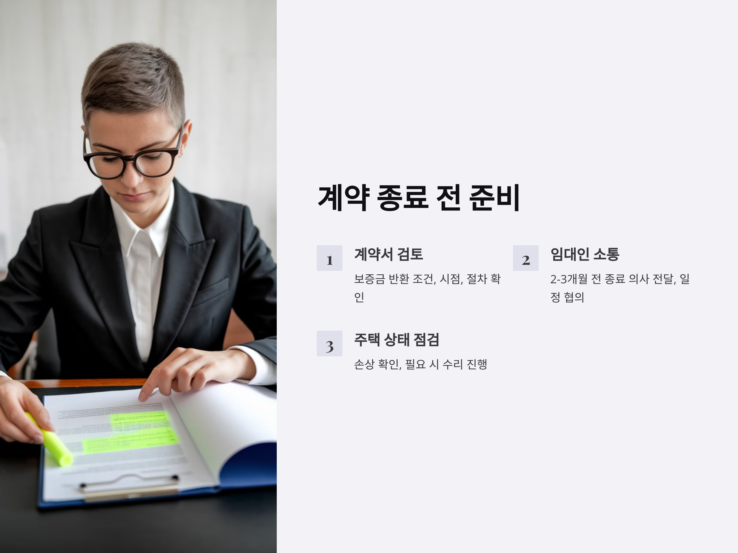 전세 계약이 종료되기 전에 다음과 같은 사항들을 미리 준비하면 보증금 반환 절차를 원활하게 진행할 수 있습니다.