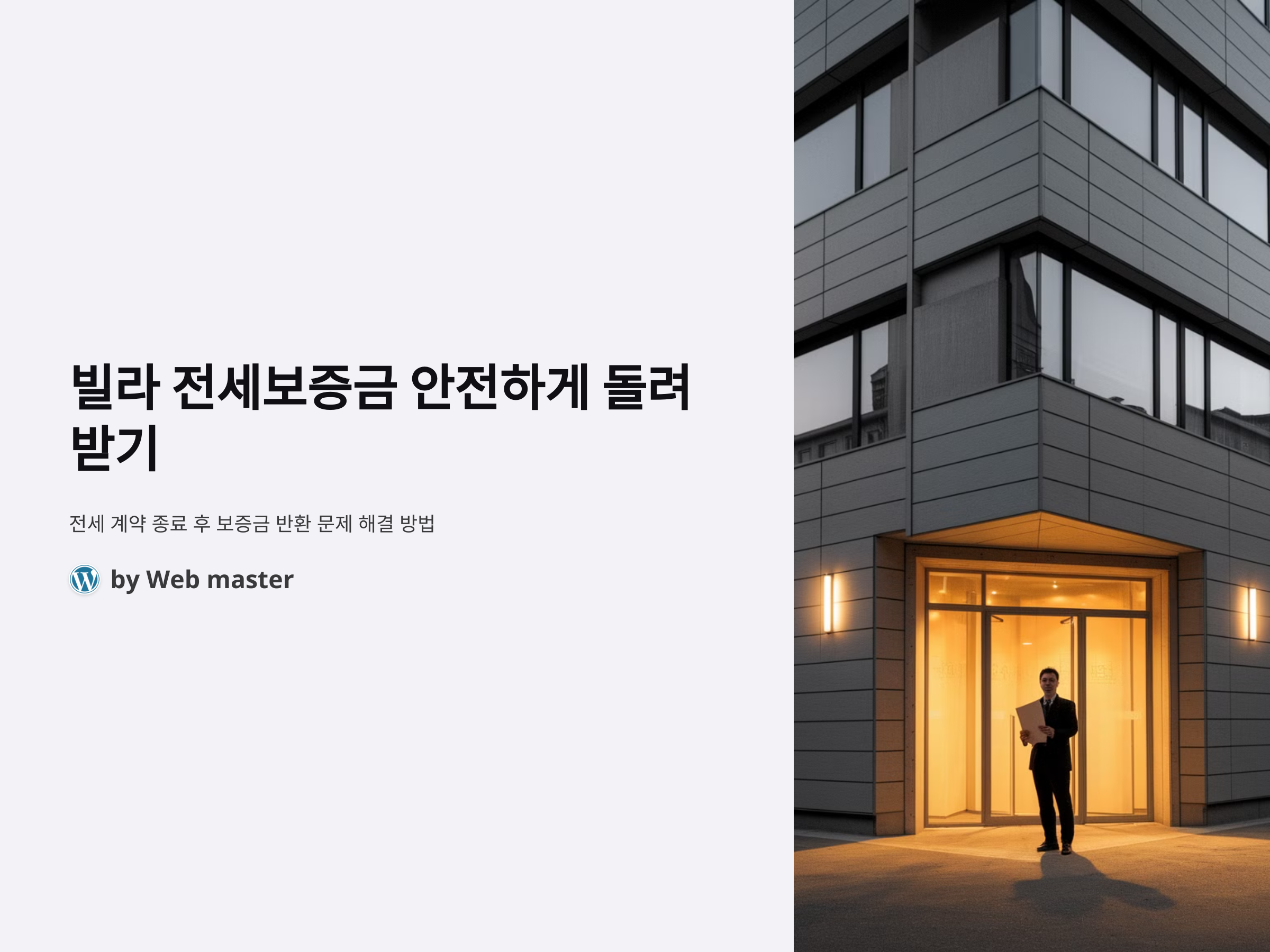 전세 계약이 종료되었음에도 불구하고 보증금을 제때 반환받지 못하는 상황은 많은 세입자들에게 큰 걱정거리입니다. 특히, 빌라와 같은 주거 형태에서는 이러한 문제가 더욱 빈번하게 발생할 수 있습니다. 이번 글에서는 빌라 전세보증금을 안전하게 반환받기 위한 구체적인 절차와 방법을 상세하게 안내해드리겠습니다.