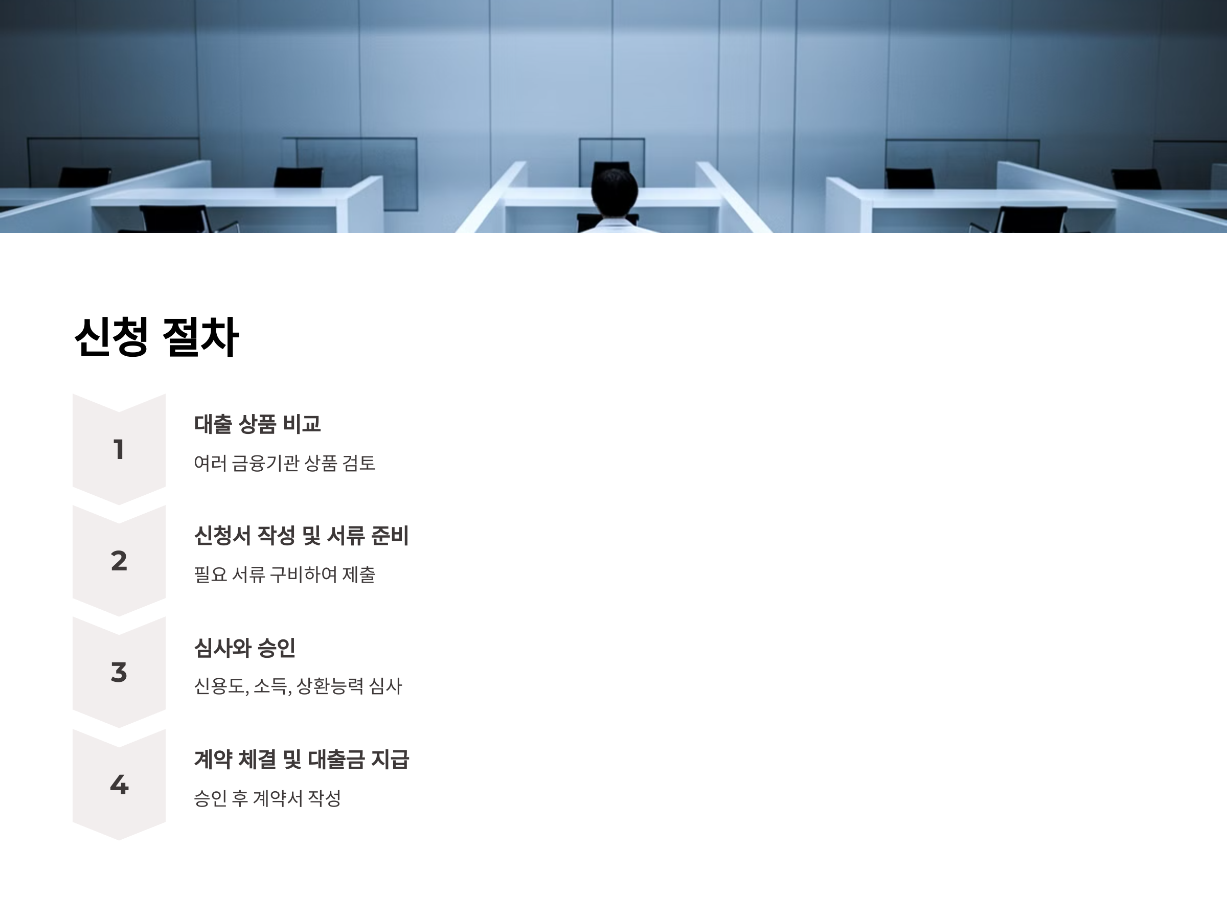 - 신청서 작성: 선택한 금융기관에 대출 신청서를 제출하고, 필요한 서류를 준비합니다.