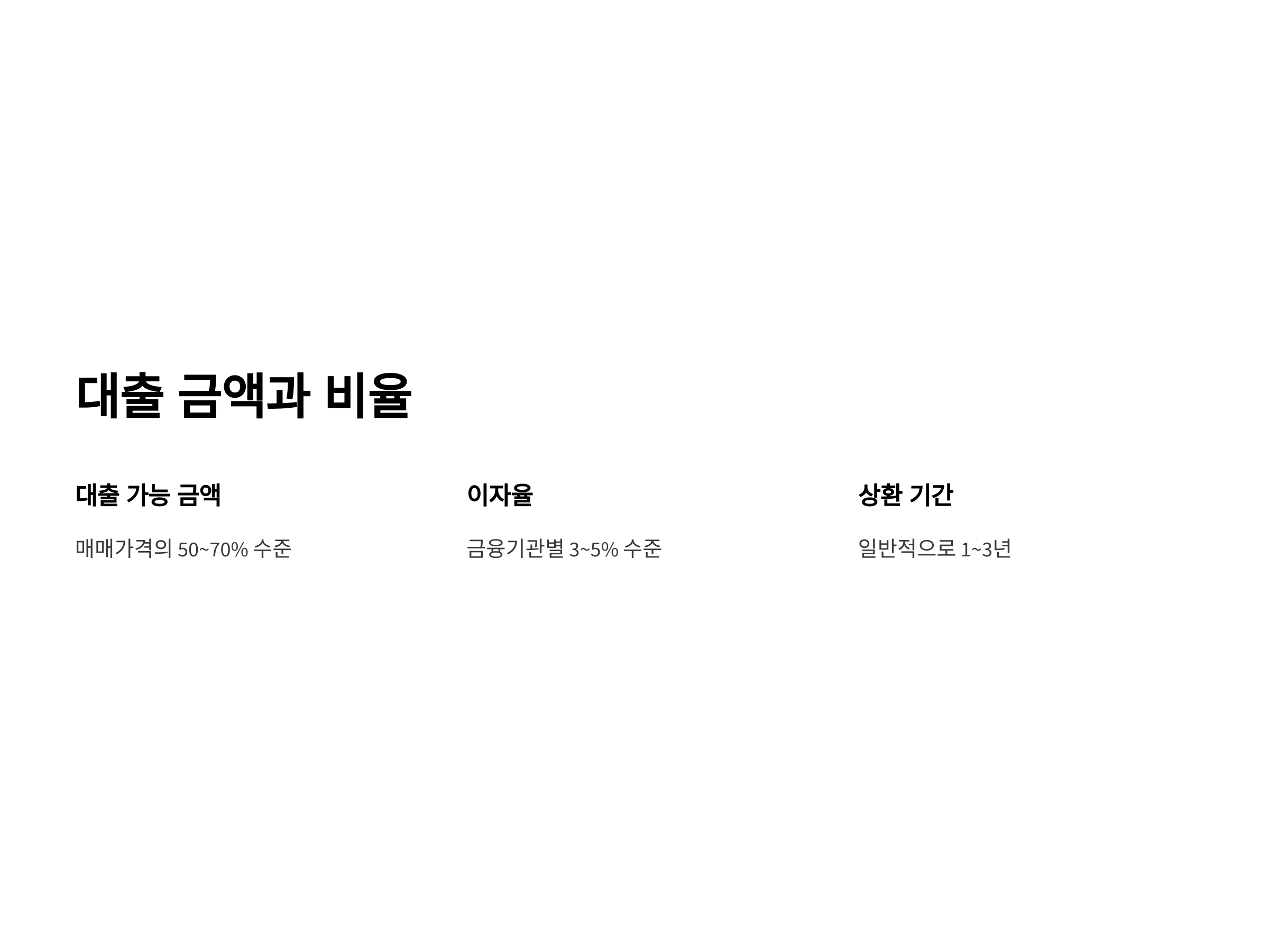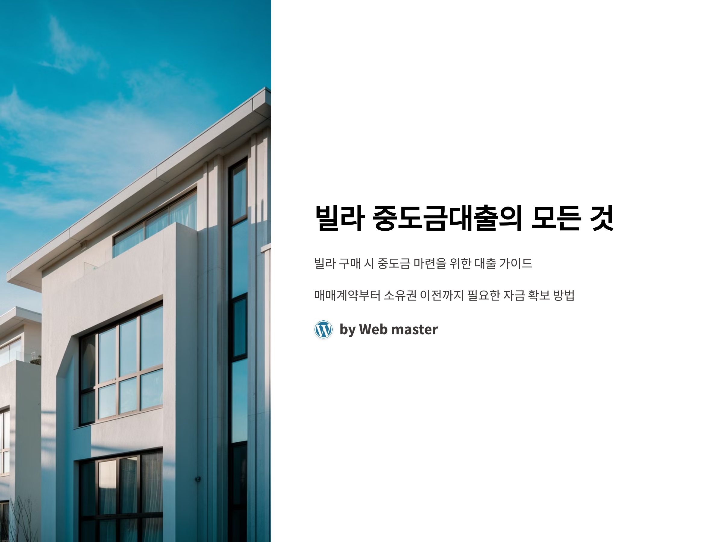 이 대출은 일반적인 대출과는 달리, 중도금을 마련할 수 있도록 도와주기 때문에, 매매계약 후 잔금 전까지의 비용을 해결하는 중요한 수단이 됩니다. 대출의 조건은 주택 담보대출과 비슷하지만, 빌라 특성상 보증금, 대출금액 제한, 이자율 등이 조금 달라질 수 있습니다.