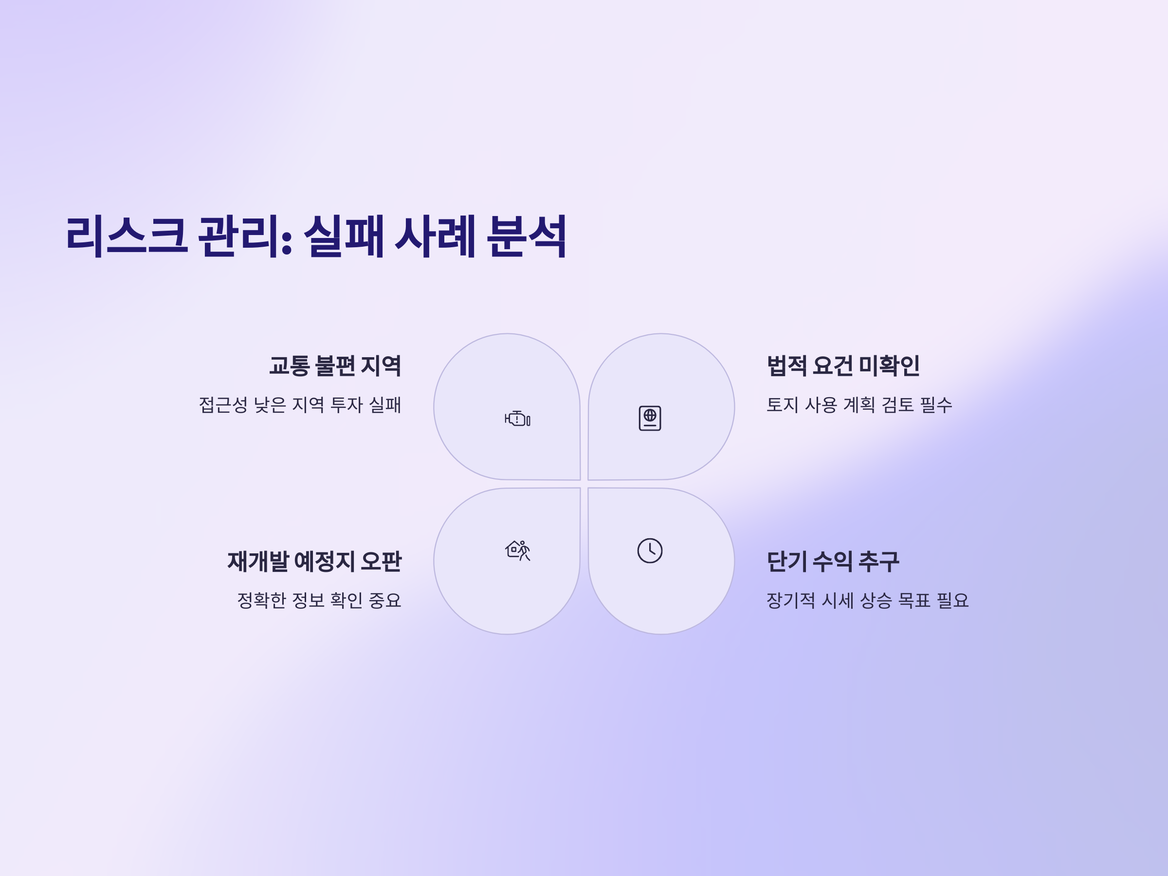 빌라 투자는 장기적인 안목이 필요합니다. 따라서 신중하게 접근하지 않으면 손실을 볼 수 있습니다. 예를 들어, 일부 투자자들은 교통이 불편한 지역이나 재개발 예정지에서 벗어난 곳에서 빌라를 구입하여 큰 손실을 본 사례도 있습니다. 이러한 실패 사례를 보면, 투자자의 결정이 얼마나 중요한지 알 수 있습니다.