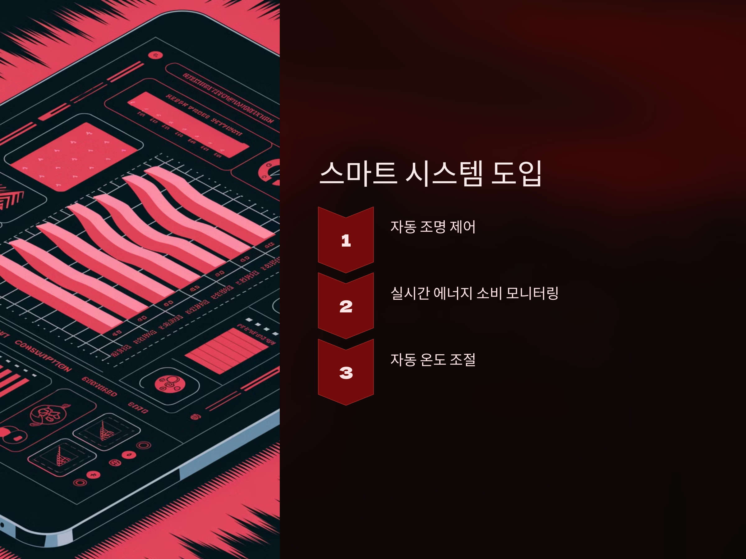 스마트 조명 시스템을 설치하면 건물 내 조명을 자동으로 제어할 수 있어 에너지 낭비를 줄일 수 있습니다. 예를 들어, 일정 시간 이후 자동으로 꺼지거나, 외부의 자연광에 맞춰 밝기를 조정하는 방식입니다. 또한, 에너지 절감 효과가 크므로 관리비 절감에 직접적인 영향을 미칩니다.
