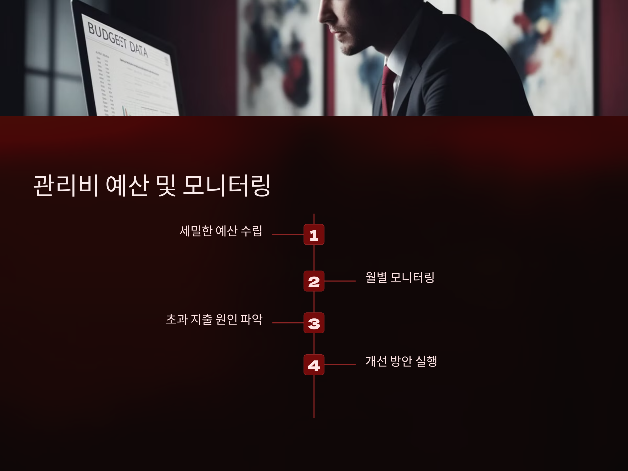 관리비는 월별로 모니터링하여 계획과 실제 비용을 비교합니다. 이를 통해 예산을 초과하는 항목이 발생하면 즉시 원인을 파악하고, 불필요한 지출을 줄일 수 있는 방법을 강구해야 합니다.
