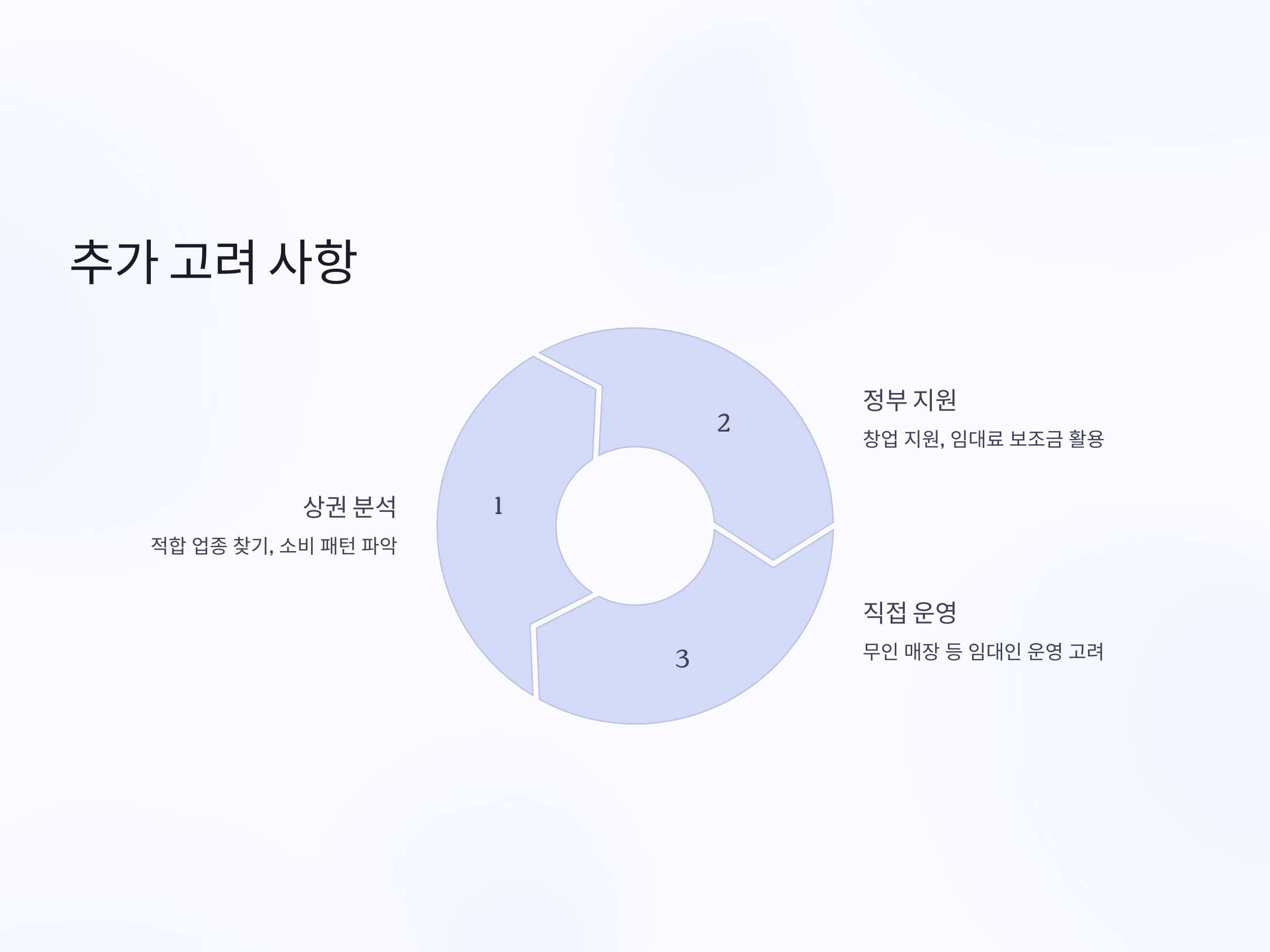 상권 분석을 통해 적합한 업종을 찾고, 유동 인구 및 소비 패턴을 파악하는 것이 중요합니다.