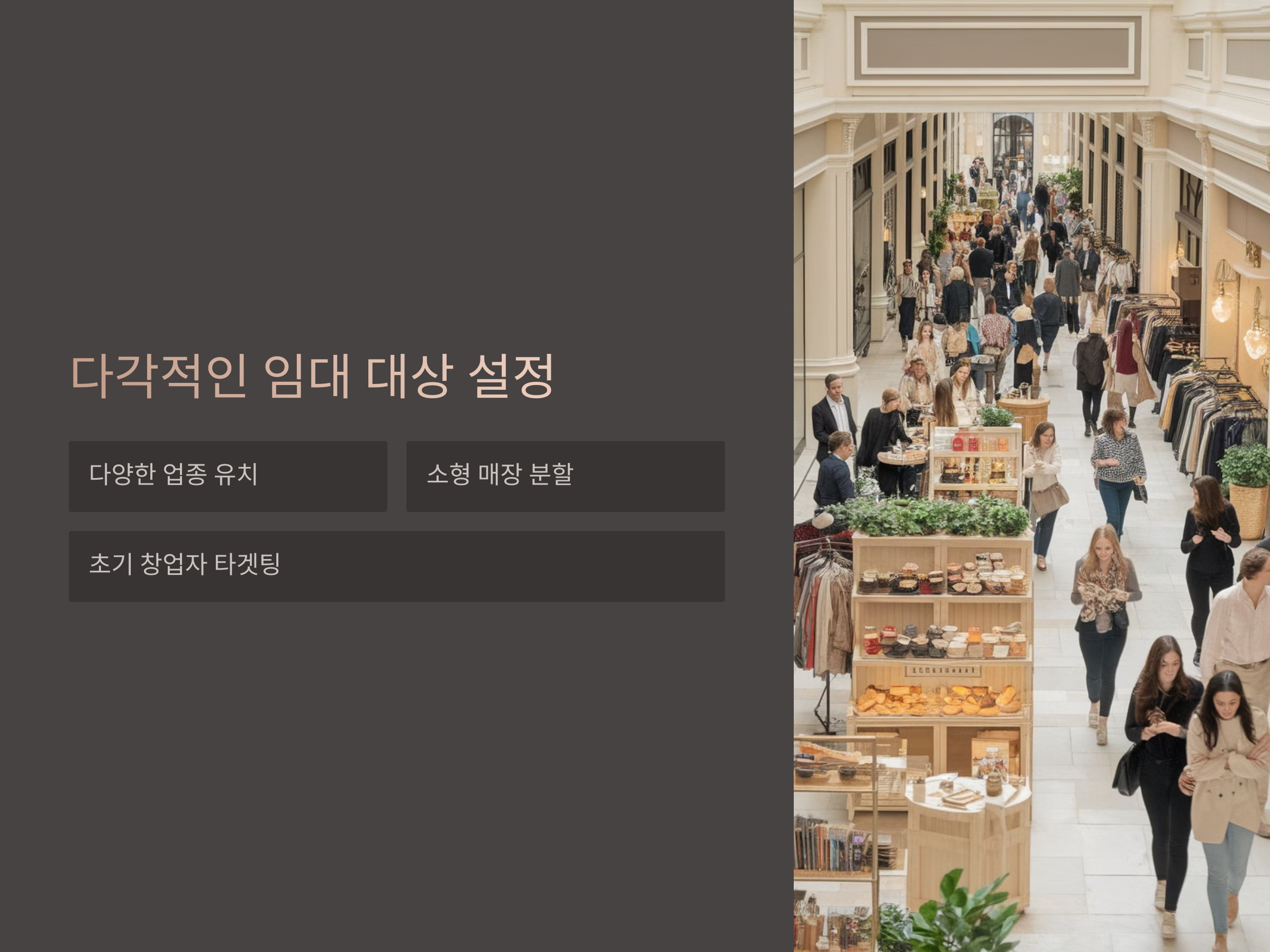 또한, 상가의 크기와 배치에 따라 여러 개의 소형 매장으로 분할하여 임대하는 방법도 고려할 수 있습니다. 소형 매장은 초기 창업자들이나 소상공인들에게 인기가 많기 때문에, 이러한 세입자들을 유치하면 공실을 줄이는 데 큰 도움이 될 수 있습니다.