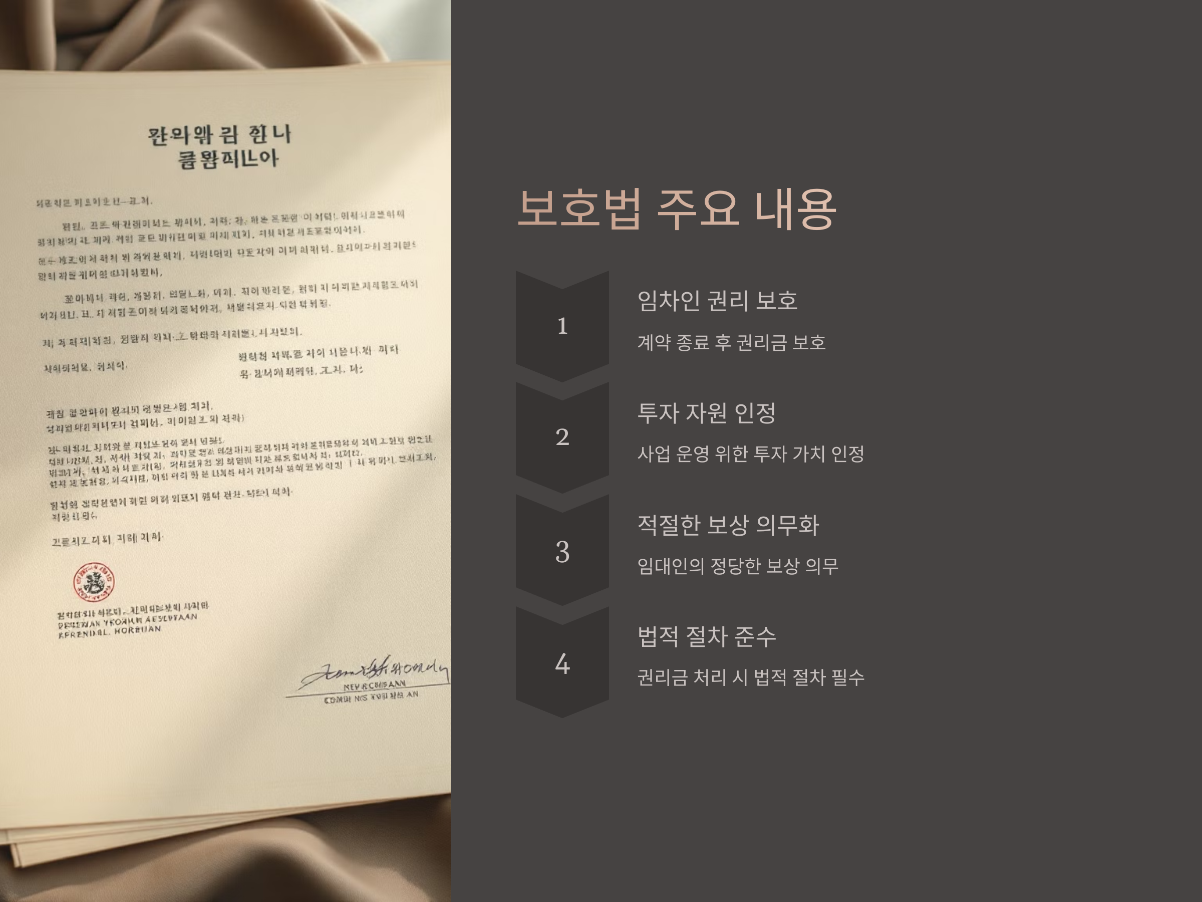 이 법의 핵심은 권리금이 단순히 상가 운영에 드는 비용을 넘어서, 임차인이 사업을 운영하기 위해서 투자한 자원이라는 점을 인정하는 데 있습니다. 따라서 계약이 종료될 때, 임대인은 적절한 보상을 해야 하며, 권리금 보호법은 이를 법적으로 규명합니다.