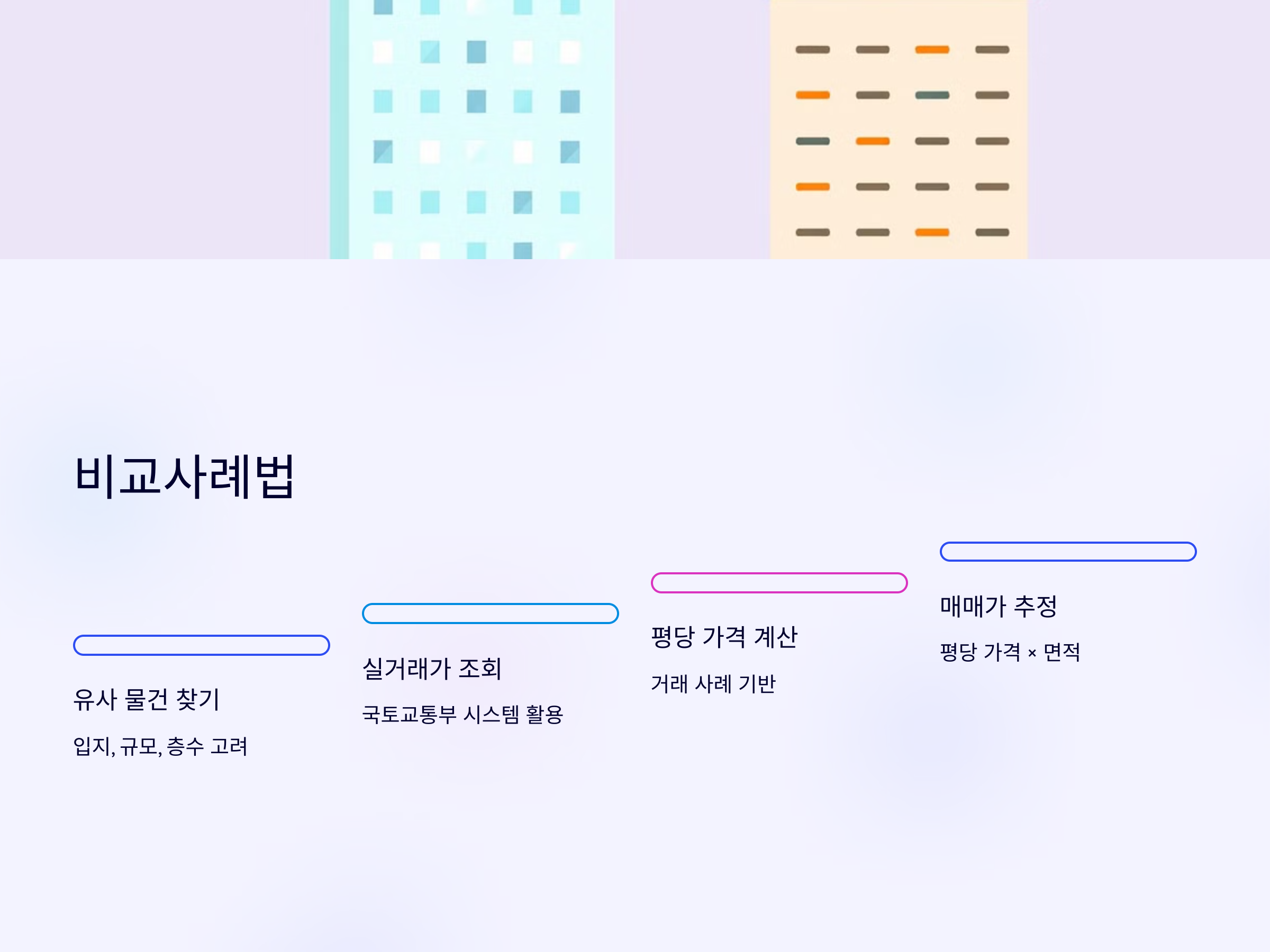 - 원가법 (건물+토지 가격 기준): 토지가격과 건물가격을 합산하여 매매가를 산정합니다.