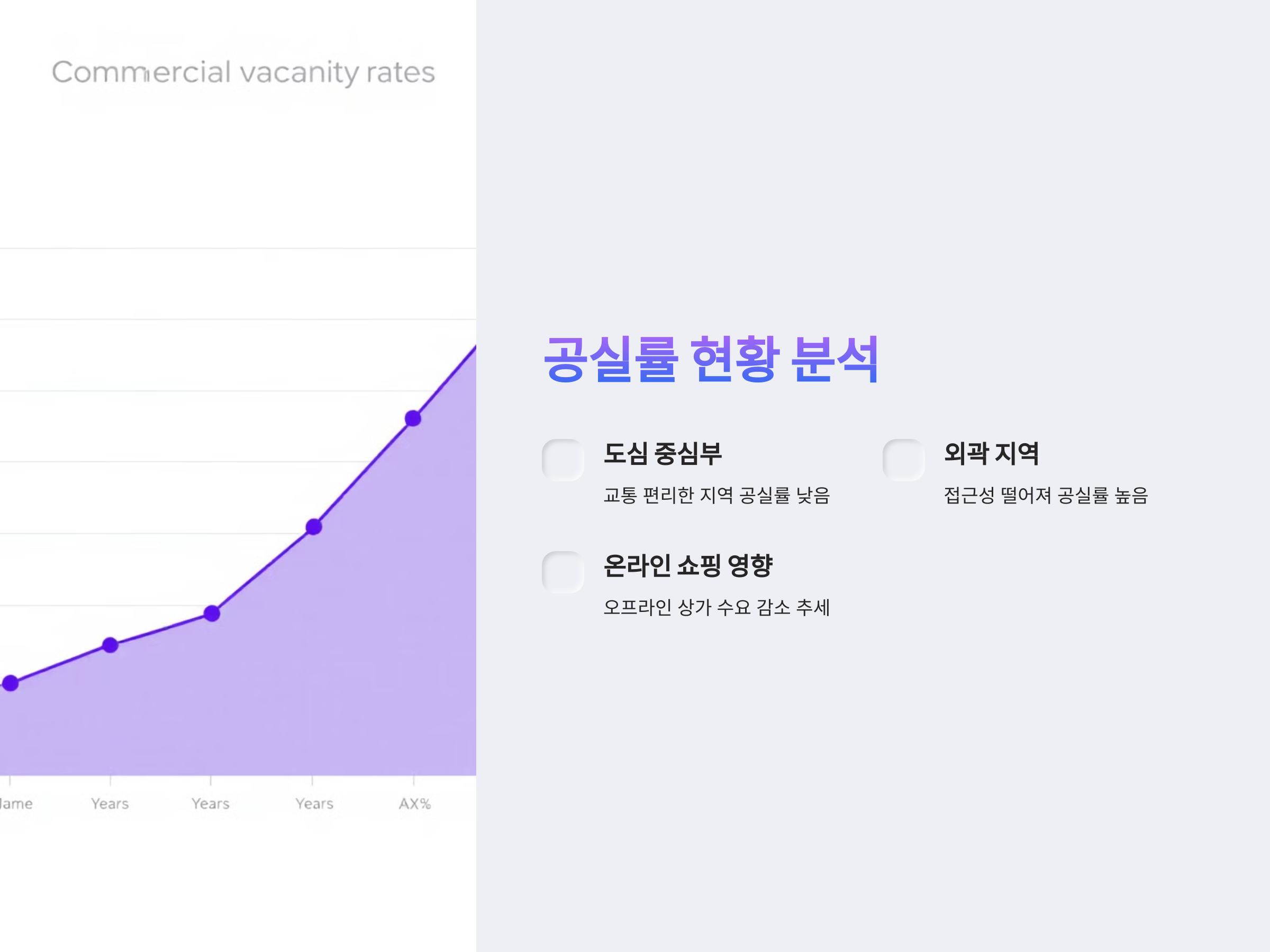 외곽 지역의 경우, 상업시설의 밀집도가 낮고, 소비자들의 접근성이 떨어지기 때문에 이러한 지역의 상가 공실률이 높은 현상을 보입니다. 또한, 최근에는 상가 임대료가 급등하면서 많은 상가가 공실 상태로 남는 경우도 증가하고 있습니다. 이는 외곽 지역에서 상업활동을 하고자 하는 사람들의 수요가 부족해지면서 나타나는 문제입니다.