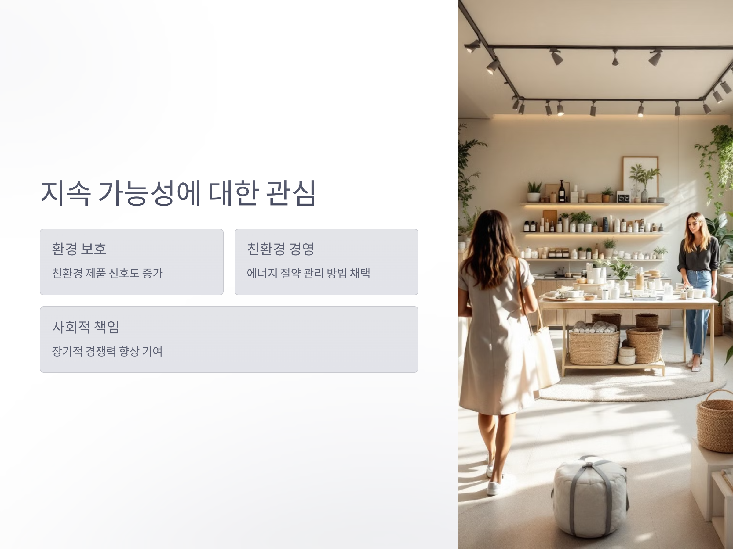 최근 소비자들은 환경 보호와 지속 가능성에 대한 관심이 증가하면서, 이러한 요소를 고려한 소비를 선호하는 경향을 보이고 있습니다. 상가는 이에 맞춰 지속 가능한 제품을 판매하고, 환경 친화적인 경영 방침을 도입하는 방식으로 소비자들의 요구를 충족시켜야 합니다. 예를 들어, 친환경적인 재료로 만든 상품이나 재활용 가능한 제품을 판매하는 상점들이 주목을 받고 있습니다.