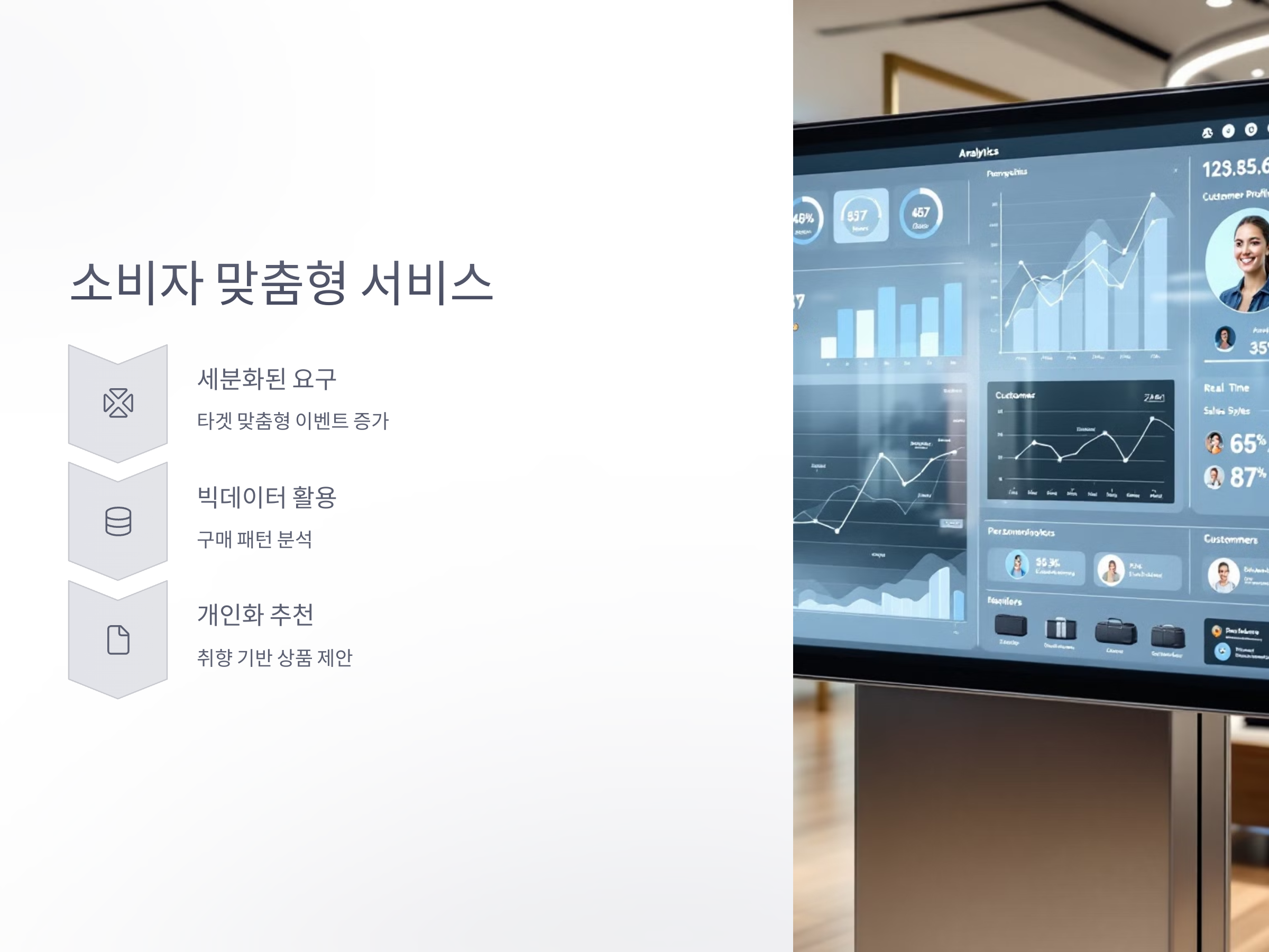 또한, 빅데이터와 AI를 활용한 고객 분석이 가능해짐에 따라, 상가는 소비자들의 구매 패턴을 분석하고 이를 바탕으로 개인화된 추천 서비스를 제공하는 방향으로 나아가고 있습니다. 예를 들어, 소비자가 이전에 구매한 제품과 관련된 새로운 상품을 추천하거나, 소비자의 취향에 맞는 할인 혜택을 제공하는 방식입니다. 이러한 개인화된 경험은 소비자들의 만족도를 높이고, 상가의 매출 증대에도 긍정적인 영향을 미칠 수 있습니다.