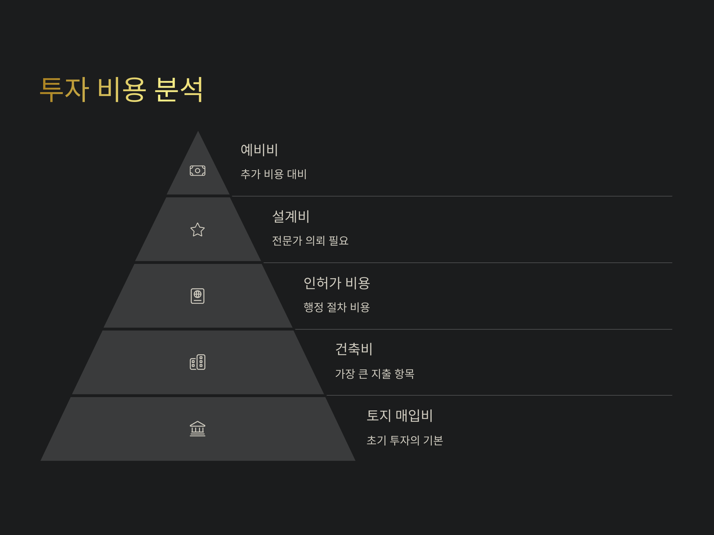 상가 신축 개발 사업에서 투자 비용은 전체 사업성 분석에서 가장 중요한 항목 중 하나입니다. 초기 투자 비용을 정확히 산정하는 것은 사업 성공 여부를 결정짓는 중요한 요소입니다. 투자 비용에는 토지 매입비, 건축비, 설계비, 인허가 비용, 기타 부대 비용 등이 포함됩니다. 이들 비용을 정확히 계산하지 않으면 사업 계획이 엉뚱한 방향으로 흐를 수 있습니다.