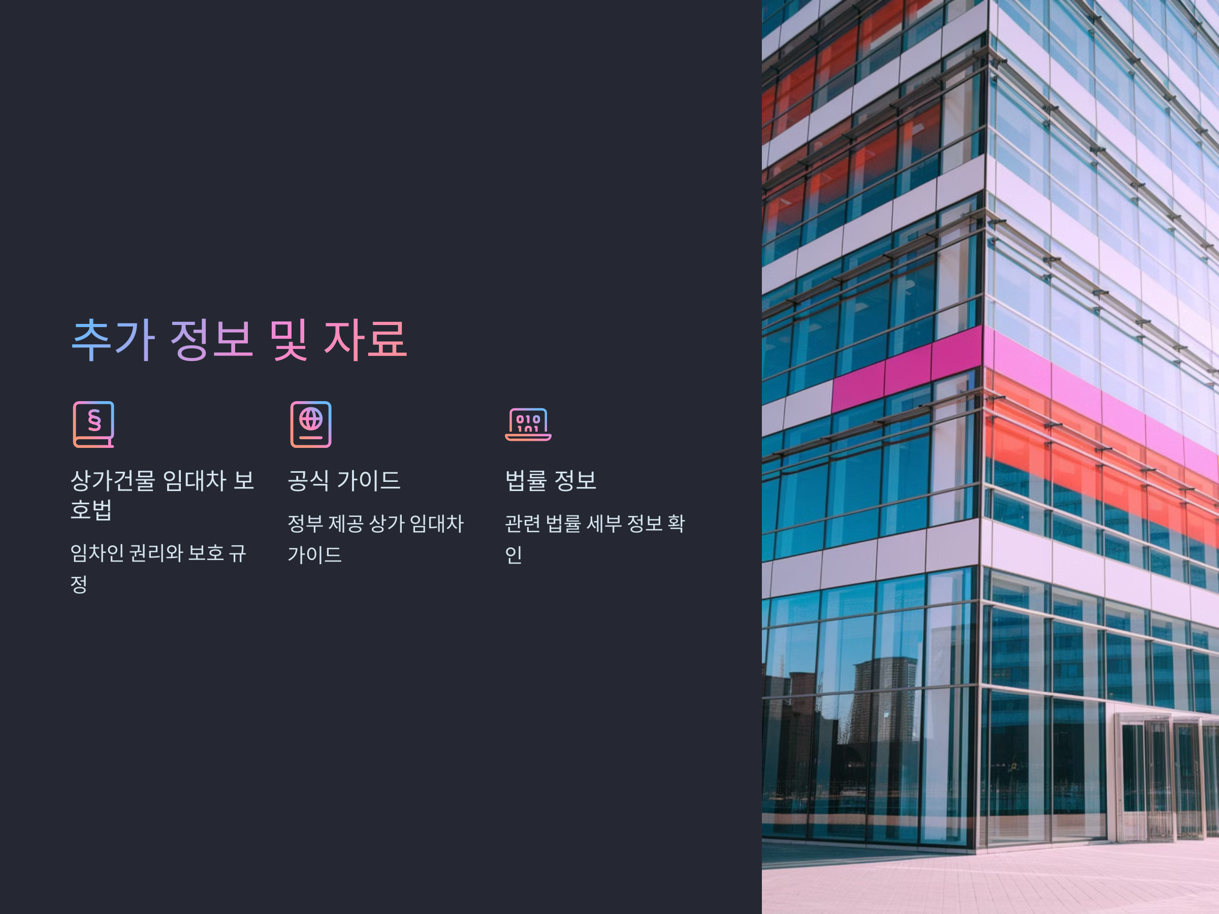 자세히 알아보기 공식 가이드 확인하기 관련 법률 정보 확인